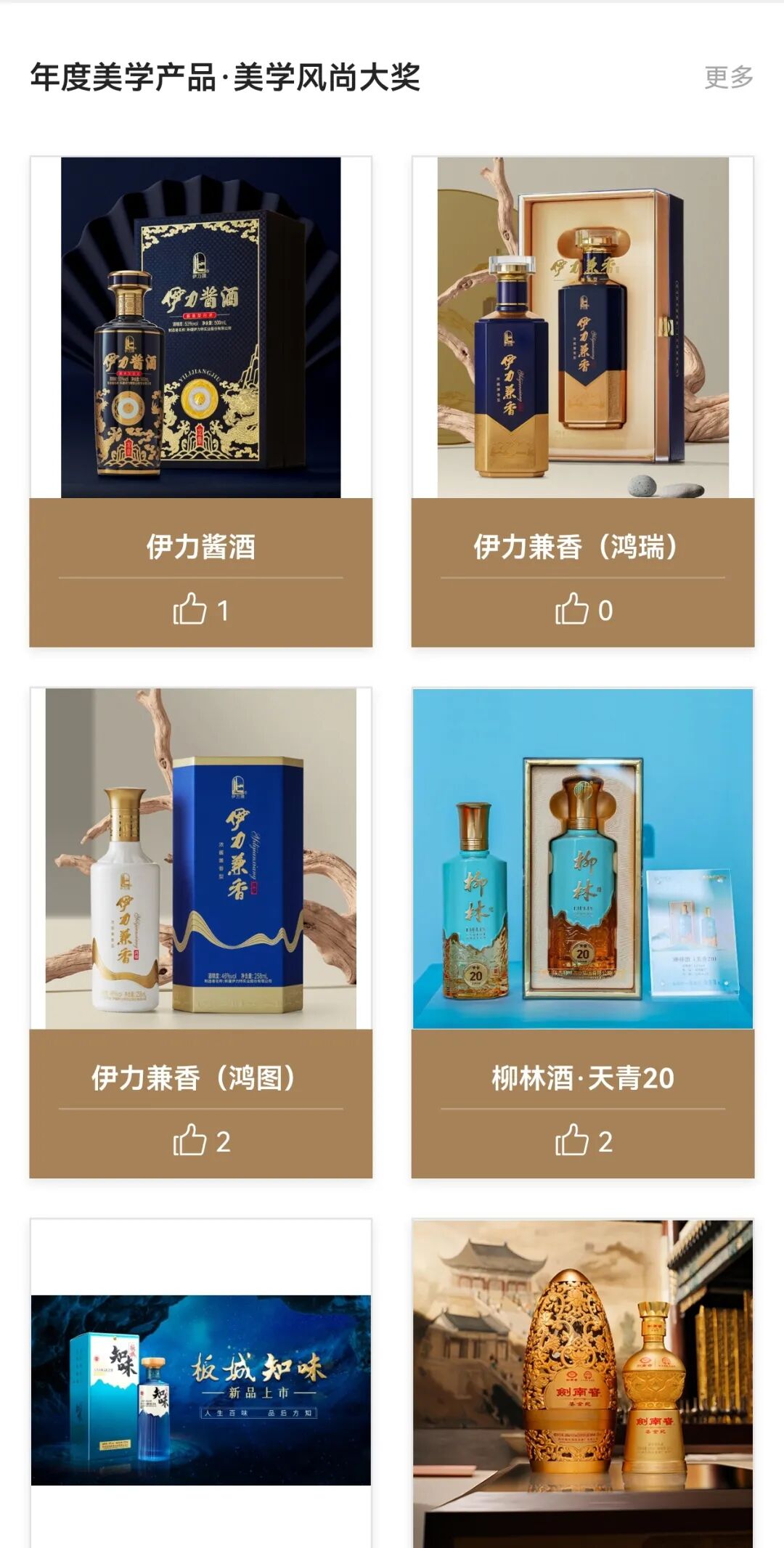 “美学风尚大奖”聚焦于各大酒业精心打造的标杆性产品。将从近百款表现亮眼的产品中选出10款获奖产品。它们中有有引领文创风尚的“黄小西吃晚饭”茅台文创系列,有与刀郎线上演唱会一起唱响的知交酒;有光瓶酒赛道的搅局者洋河大曲高线光瓶酒;有创新口感和品饮方式的玻汾(桂花汾)、金星荆芥中式精酿、牛碧桶等;还有在企业重点打造、瞄准新增长曲线的产品,如沙城老窖精彩酒、蓝标叙府大曲、台源红、庞泉·国潮等。它们凝聚着品牌的创新思想,是企业面对市场周期性调整做出的有力应对。