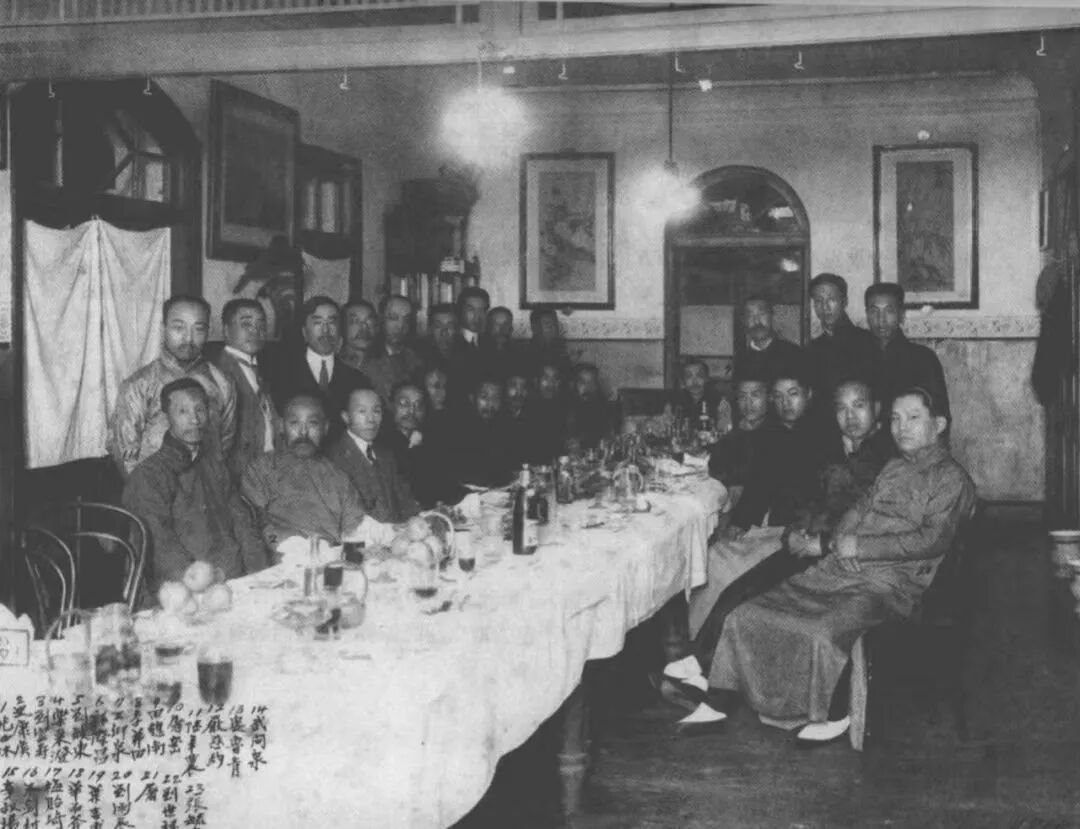 1914年9月,直隶省赴巴拿马万国博览会的人员临行前在天津德义楼雅集饯行留影。(左边前排坐者第四人为乐嘉藻)