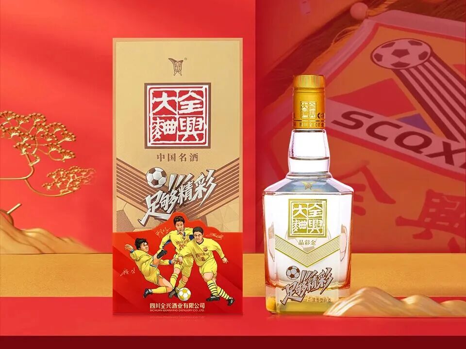 其次,赛事联名产品全兴大曲·晶彩金(足够精彩)的发布,让足球情怀有了可触可感的载体。