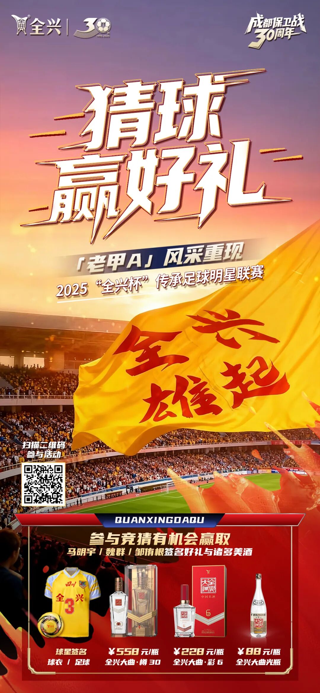 时隔12年,前身为老甲A联赛的传承足球明星联赛再度回归蓉城,全兴以赛事独家冠名商的身份重磅亮相。