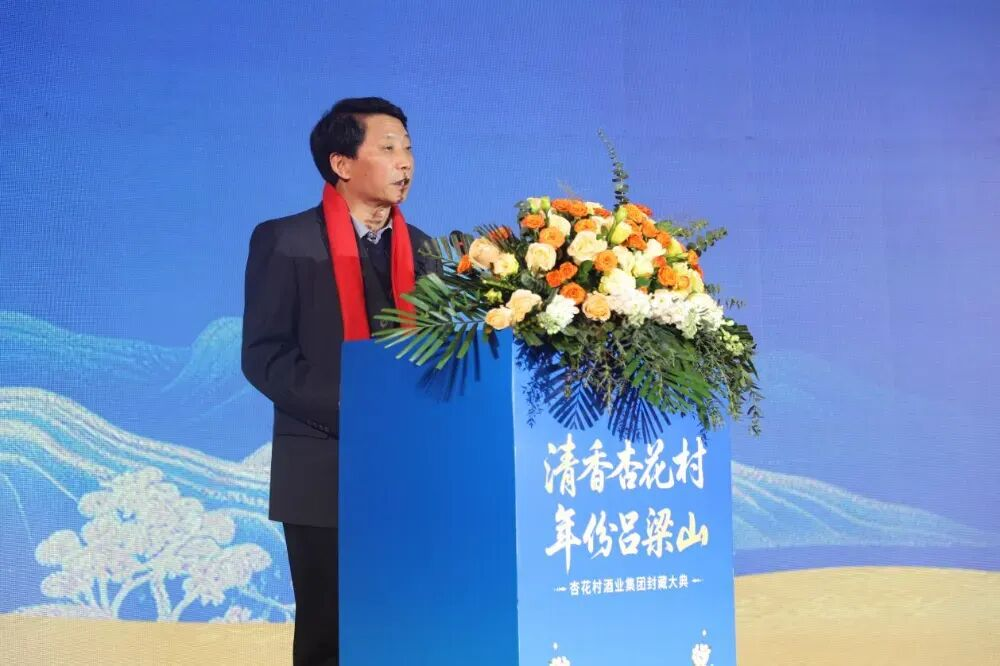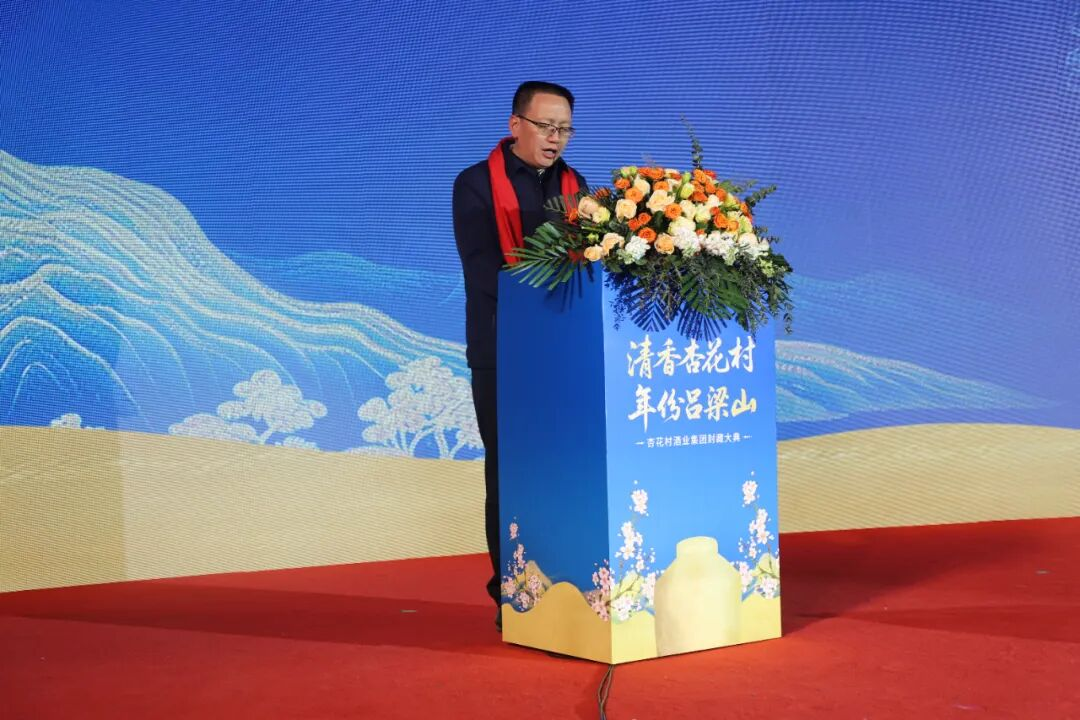吕梁市委常委、市政府党组成员、副市长闫林率先发表开场致辞。他代表吕梁市委、市政府对各位来宾表示热烈欢迎,细数吕梁作为华夏文明重要发祥地的深厚底蕴,从北齐史书中的“汾清”记载,到6000余年历史的酿酒器具出土,再到如今“世界美酒特色产区”的金字招牌,杏花村的酒香早已成为吕梁最具辨识度的文化符号。闫林强调,杏花村酒业集团的发展与吕梁振兴同频共振,此次封藏大典既是北方酿酒“冬藏”传统的延续,更是吕梁白酒产业高质量发展的庄严宣誓,市委、市政府将持续优化营商环境,让吕梁成为白酒企业投资兴业的沃土。