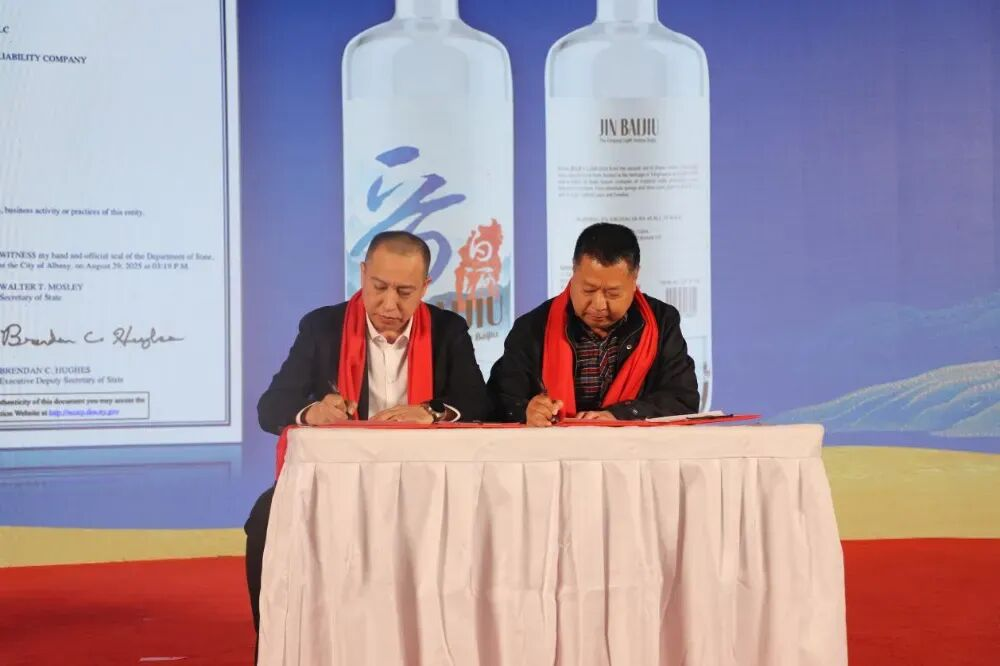 山西杏花村酒业集团有限公司董事长许堂峰随后带来《杏花村酒业集团封藏产品与模式解读》演讲,揭秘吕梁山封藏酒的核心竞争力。他介绍,产品兼具“四好”特质与“八同”血脉——与汾酒同宗源、同产区、同水源等,以“3271”品质密码坚守“清蒸二次清”古法工艺,恪守“原产地封藏,真年份坛储”法则。许堂峰还重磅推出封藏会员计划,涵盖认购赠酒、3年免费专业仓储、便捷取用分装、十年回购保障等多重权益,让封藏酒兼具尊享价值、情感价值与财富价值。演讲尾声,许堂峰与美国JIN SPIRITS GROUP LLC公司中国区代表桂秀山共同签约,为典藏版吕梁山酒的国际化布局迈出重要一步。
