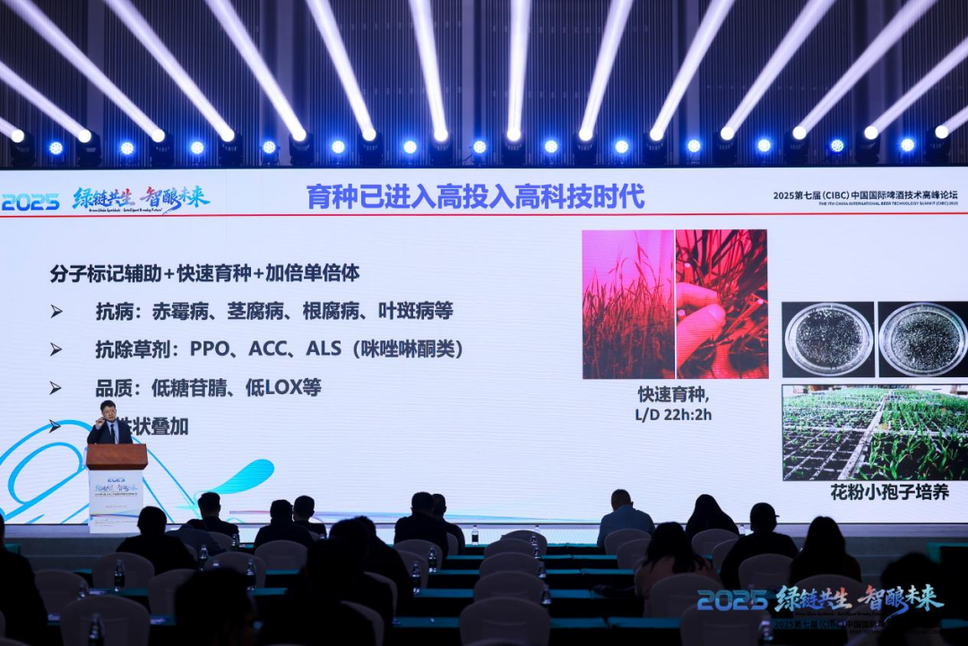 绿色实践贯穿于从原材料到包装的每一个环节。国家大麦青稞产业技术体系首席科学家郭刚刚提出,未来育种需兼顾产量、品质与抗逆性,推动酿造专用品种认证,从源头践行“国麦振兴”。在包装环节,克朗斯公司助理销售总监占鑫华展示了其前沿的环保技术,如超声波洗瓶机、可减少包材用量的创新包装等,通过装备升级切实帮助企业节能降碳。