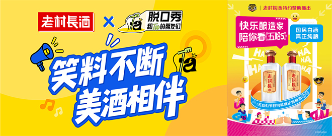 随着互联网平台喜剧综艺的大规模涌现,老村长酒进一步扩展快乐版图。先后与《脱口秀大会》第二季、《喜剧之王单口季》、《脱口秀和Ta的朋友们》第一&二季、《哈哈哈哈哈》第五季等年轻化、网感鲜明的内容IP展开深度联动,以更贴近当代语境的沟通方式与消费者对话。