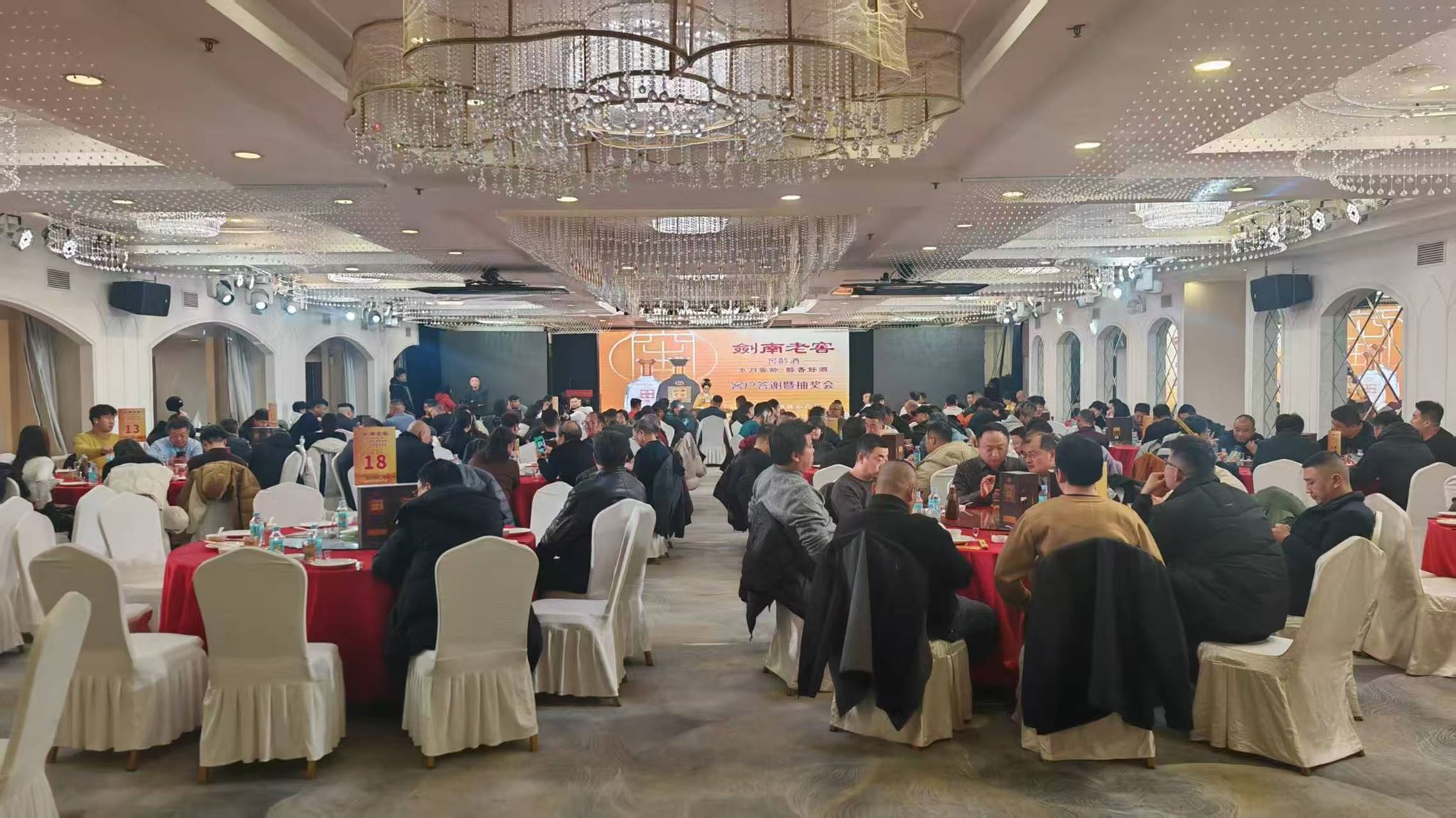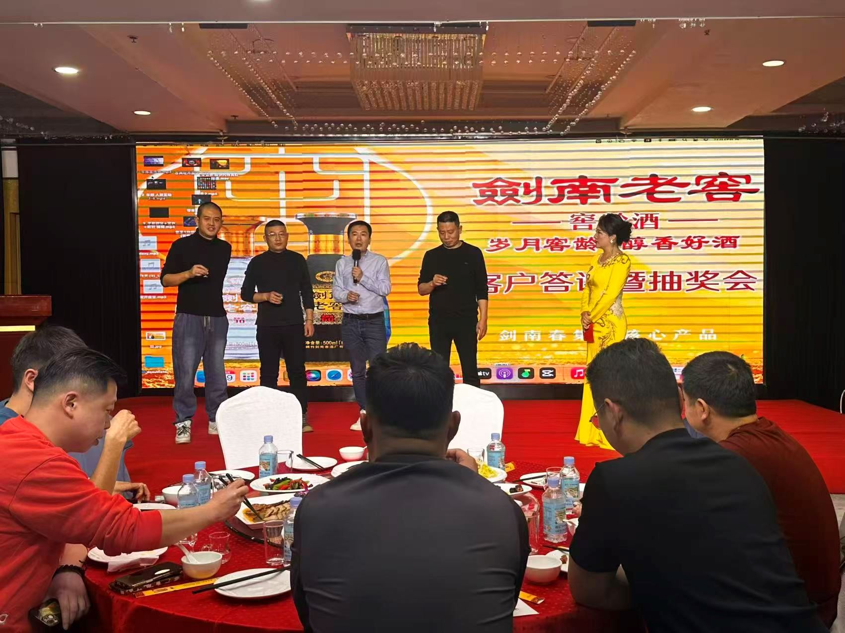 为感谢合作伙伴一年来的鼎力支持,答谢会特别安排了丰富多彩的互动环节。魔术师的精彩表演引得全场惊叹连连,而十余轮抽奖活动更是将现场气氛推向高潮。每一位到场的客户都收到了精心准备的伴手礼,体现了剑南老窖对合作伙伴的诚挚谢意。