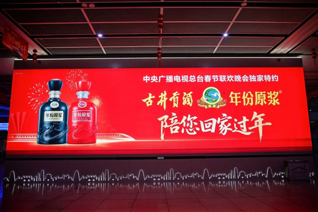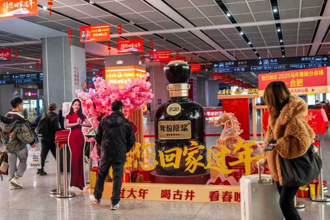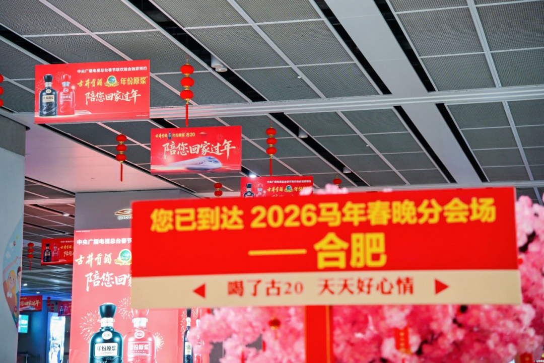 从飞驰的高铁列车到高速路上的广告牌,从合肥南站的总台春晚分会场合肥打卡点到城市街头的年味灯箱,2026年春节,古井贡酒的身影一路相伴。它不只是沿途的风景,更像一位老友,在游子跨越山河的归途上轻轻说一句:快到家了。