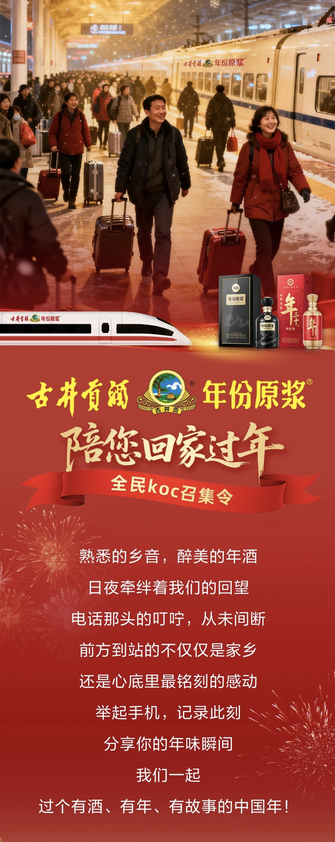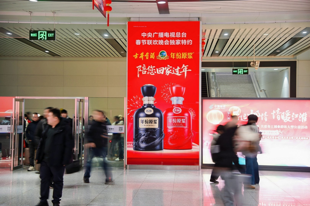车窗外的风景一路倒退,广播里响起“古井贡酒·年份原浆冠名的品牌列车提醒您,前方到站……”的提示。当疲惫的游子拖着行李箱走出车厢,一路看到的是“古井贡酒陪您回家过年”的灯箱亮着温暖的光。对无数归家人来说,这应是春节最温情的开场。
