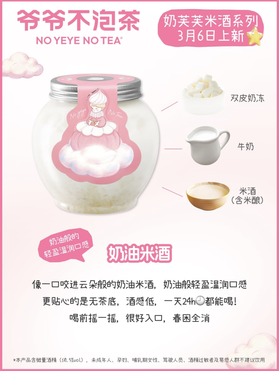 米酿+双皮奶软fufu奶乎乎,温润丝滑奶油感拉满,喝前摇一摇,每一口都能吸到满满的小料。