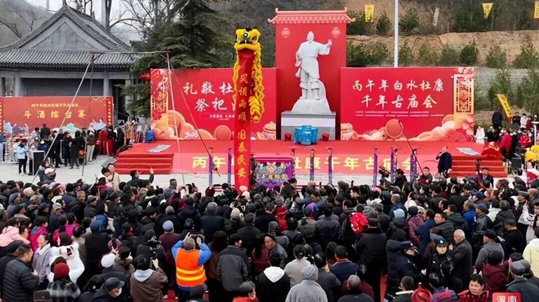 3月7日-3月9日,千年杜康古庙会文化节在白水县杜康镇盛大举行。锣鼓秧歌的热闹、舞狮杂技的精彩、祭酒敬贤的庄重、酒令擂台的新奇,共同交织成一幅极具烟火气的民俗画卷。