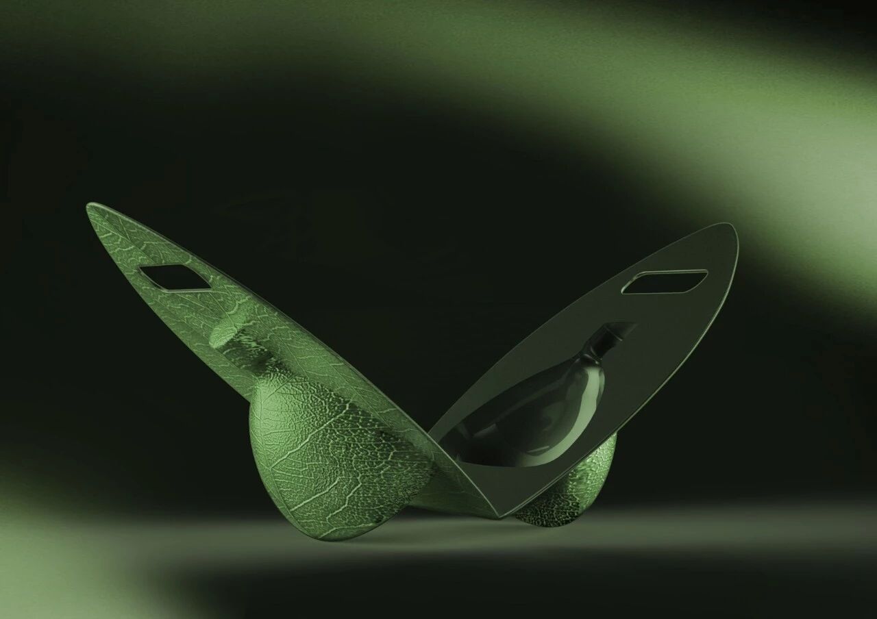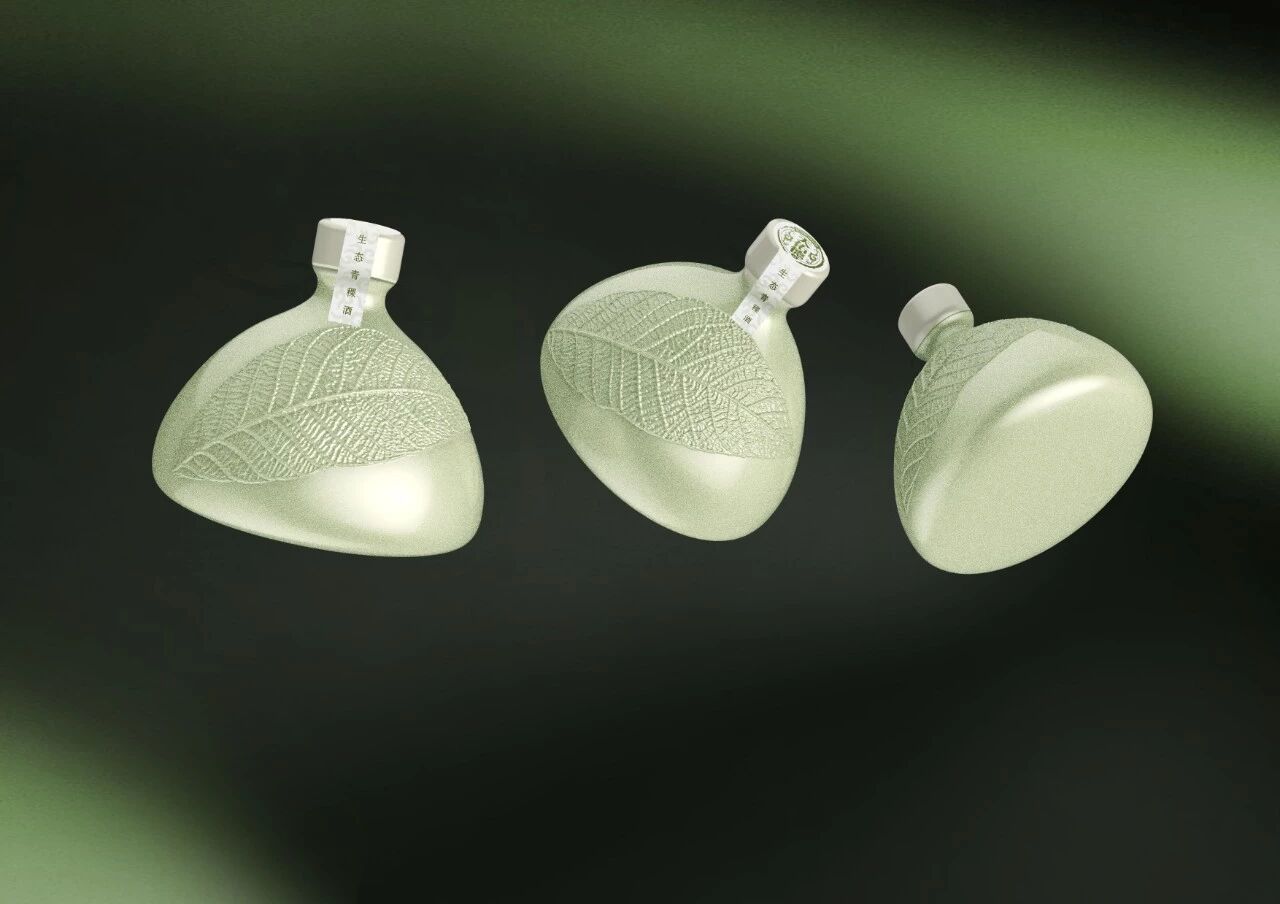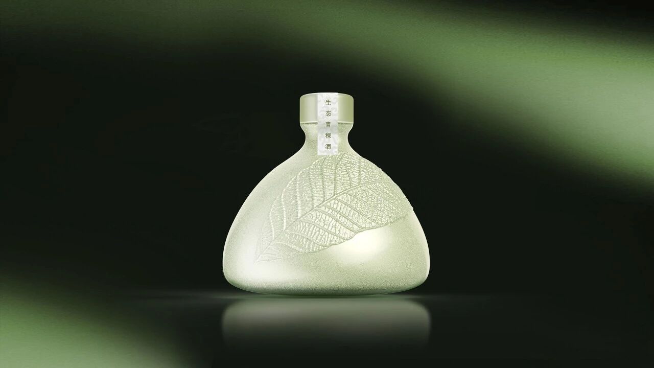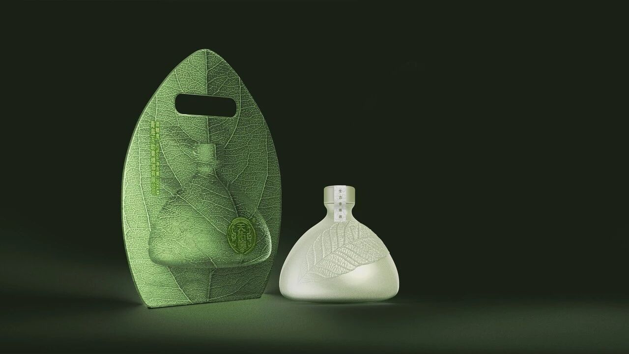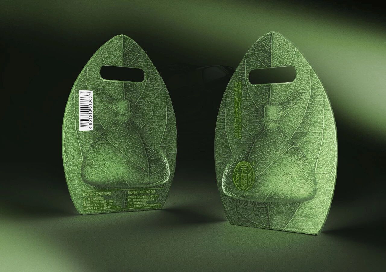 产品设计运用仿生设计,灵感来自于印度用叶子的餐具方式,用“一片叶子”作为造型,意在表达整体包装的生态环保,让消费者一目了然:传达它是生态无污染原料所酿造的青稞酒。