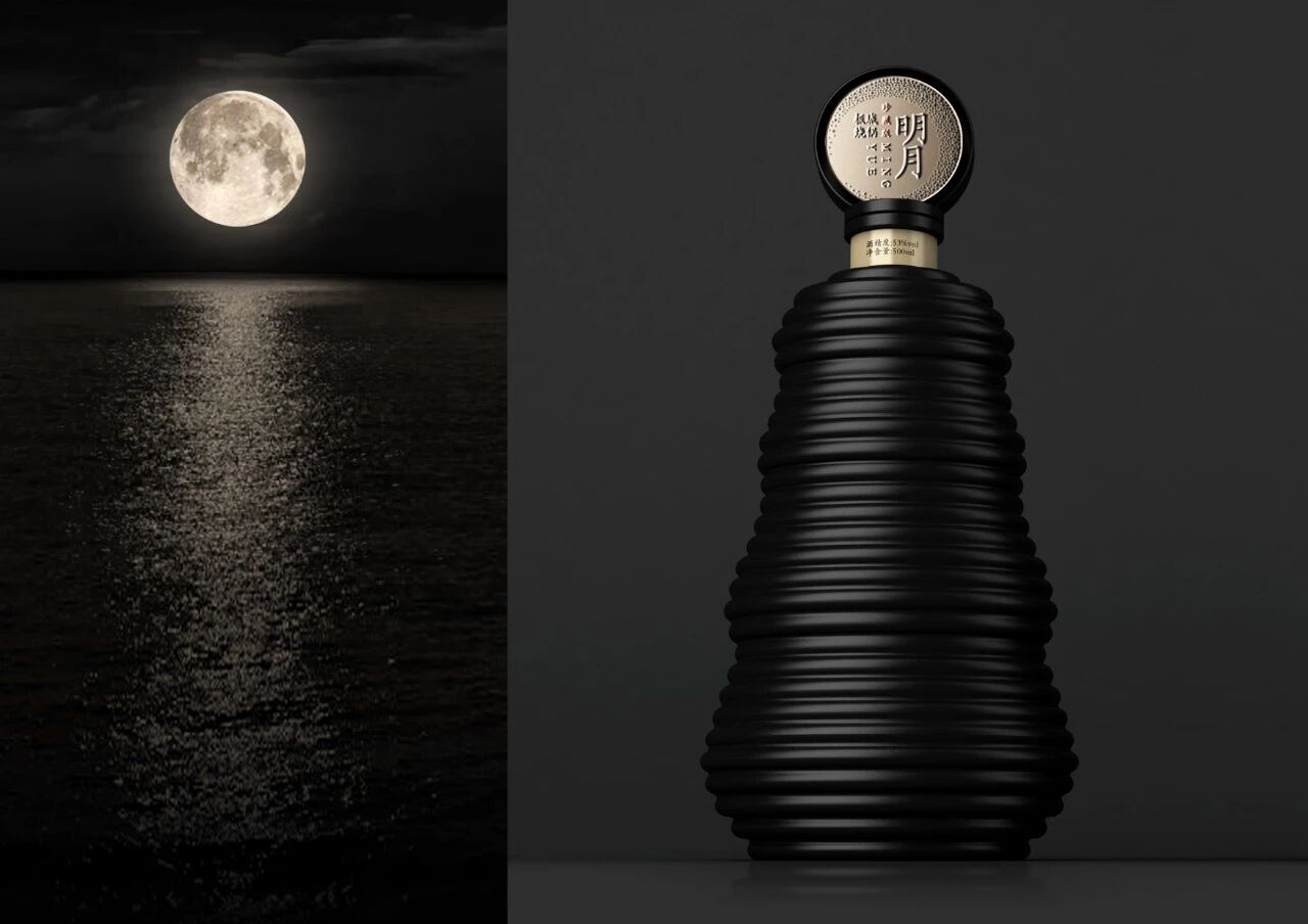 瓶身设计则借鉴月光照射在湖面泛起涟漪的画面,瓶盖则是一轮“明月”。