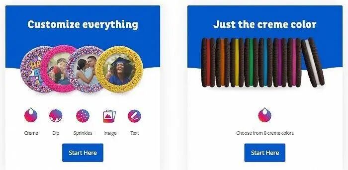 近期,奥利奥在其官网推出一项在线饼干定制服务,且有两种定制方式:一种是只进行奶油颜色的定制;另一种是创造性的定制,可以选择奶油的颜色及口味,糖霜的口味,在饼干上写字甚至放置图片,在包装和礼盒上也有个性化的选择。价格范围在2.50美元到52.95美元之间。