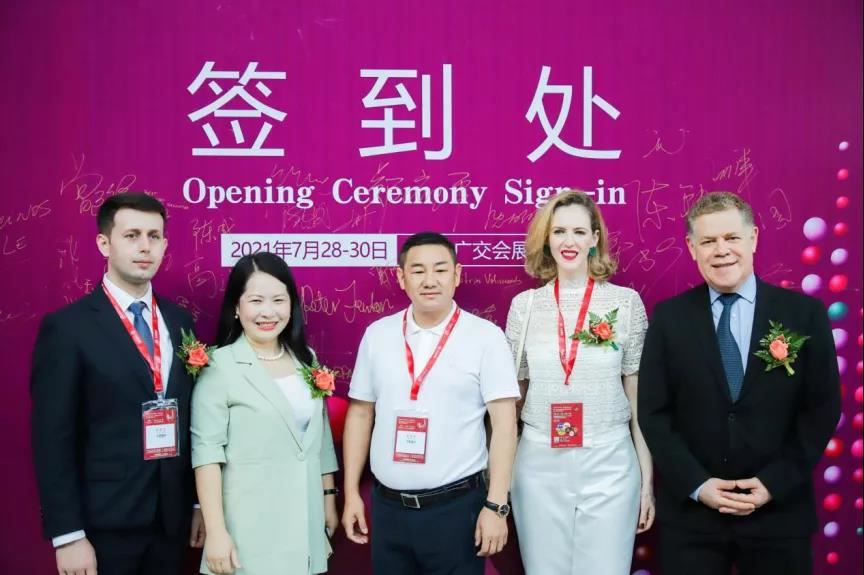 科通国际展览(广州)有限公司董事长贾燕平、广东省酒类行业协会会长彭洪、中国酒类流通协会副会长刘员、智利驻广州总领事Rodolfo Montecinos Mac Adoo、巴西驻广州副总领事Glaucio Jose Nogueira Veloso、九江酒厂董事长兼总经理关正生等领导与嘉宾出席开幕式并致辞。