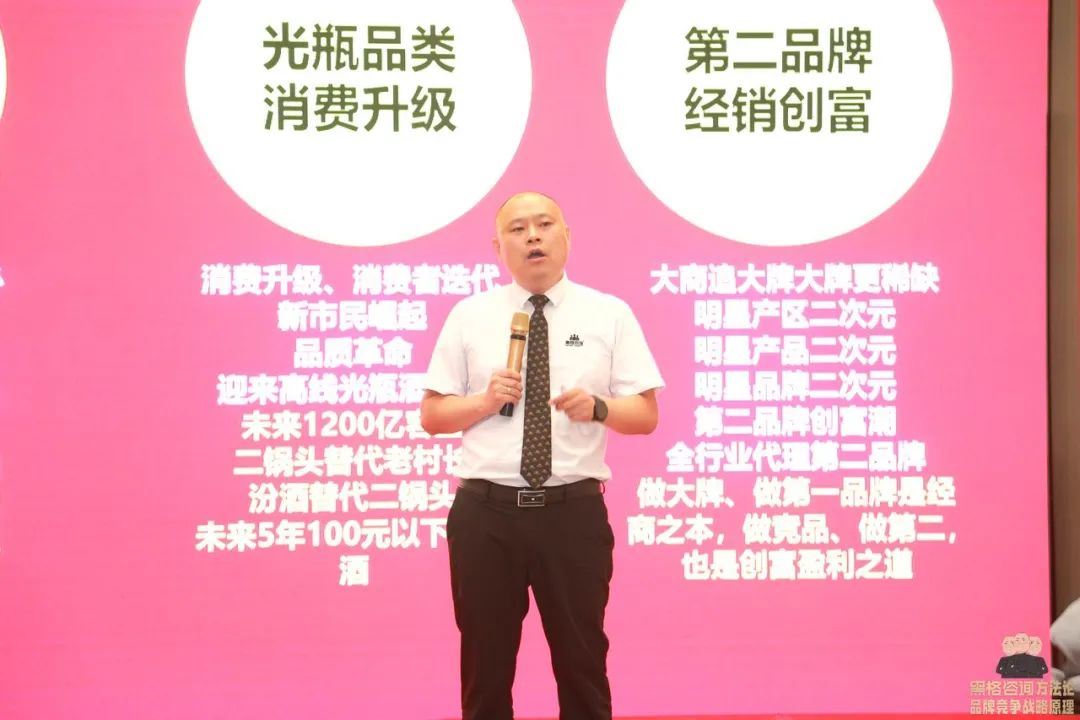 黑格咨询副总经理、新业务事业群总监那凡现场分享《省酒破圈:诗仙太白复兴之路》,那总介绍到,诗仙太白是重庆的老名酒,近几年在重庆市场上名酒挤压、川酒横行、小酒成风,诗仙太白的地位岌岌可危。自黑格咨询入驻后用“品牌竞争原理”从诗仙太白酒业的战略、模式、产品、组织等层面进行了重新的规划与定位。值得一提是,黑格咨询帮助诗仙太白复兴了“新花瓷”系列产品,唤醒当地消费者消费记忆,一经上市就收到消费者强烈追捧,将新花瓷打造成诗仙太白夯实省酒地位的新龙头产品。