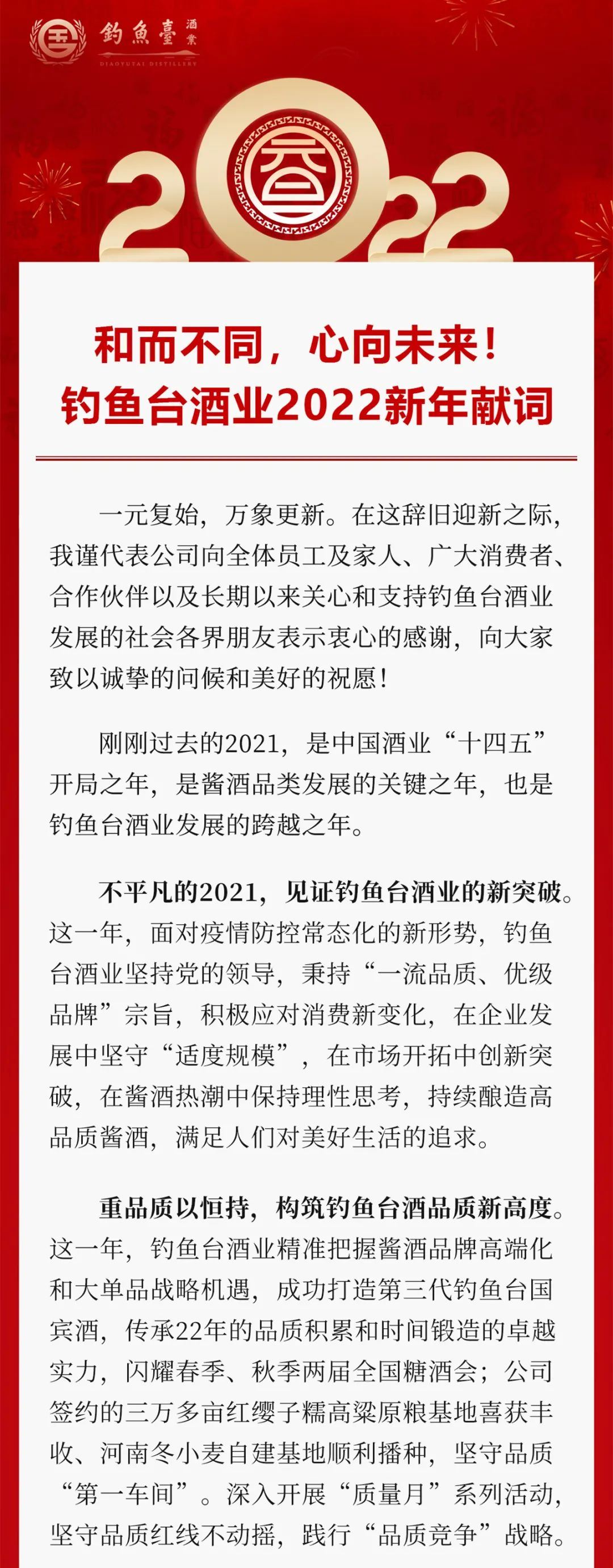丁远怀:和而不同,心向未来 | 钓鱼台酒业2022年新年献词