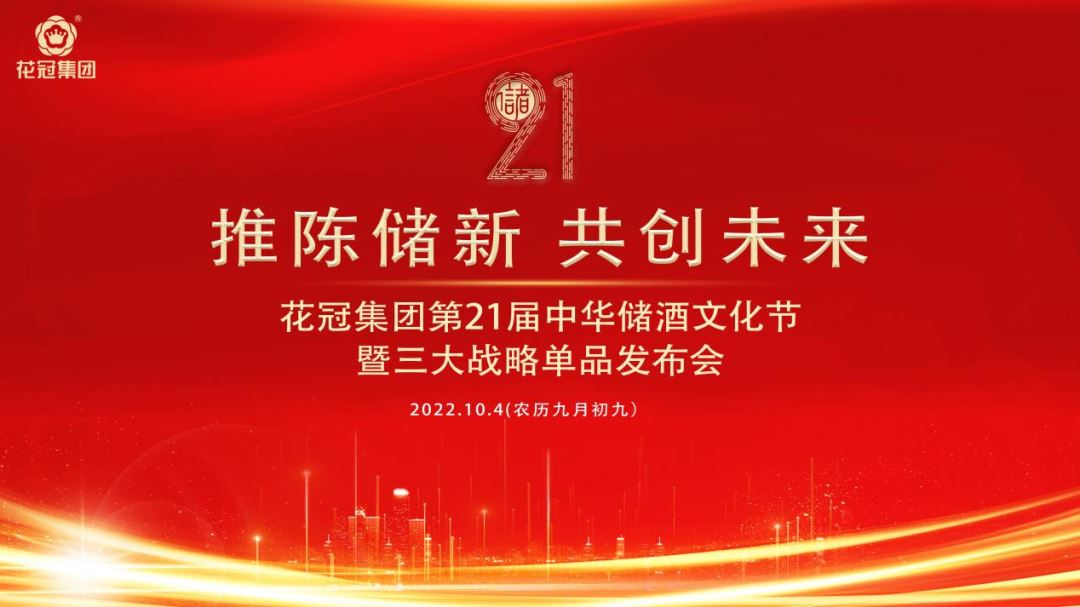 推陈储新,共创未来。花冠集团第21届中华储酒文化节暨三大战略单品发布会将于10月4日隆重召开。来自社会各界的名流、酒界泰斗、媒体记者齐聚花冠集团,共同见证中国白酒界这一重大盛事,目睹花冠酿酒历史的傲人成就和中华储酒文化节的骄人盛况。