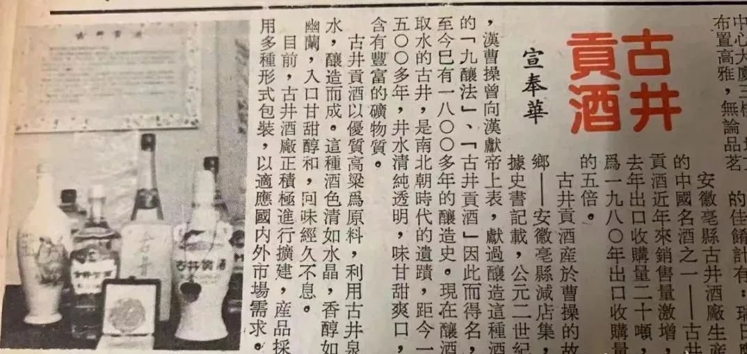 彼时,古井贡酒登上《大公报》,亮相多个国际舞台,在消费者心中有着不可磨灭的记忆。