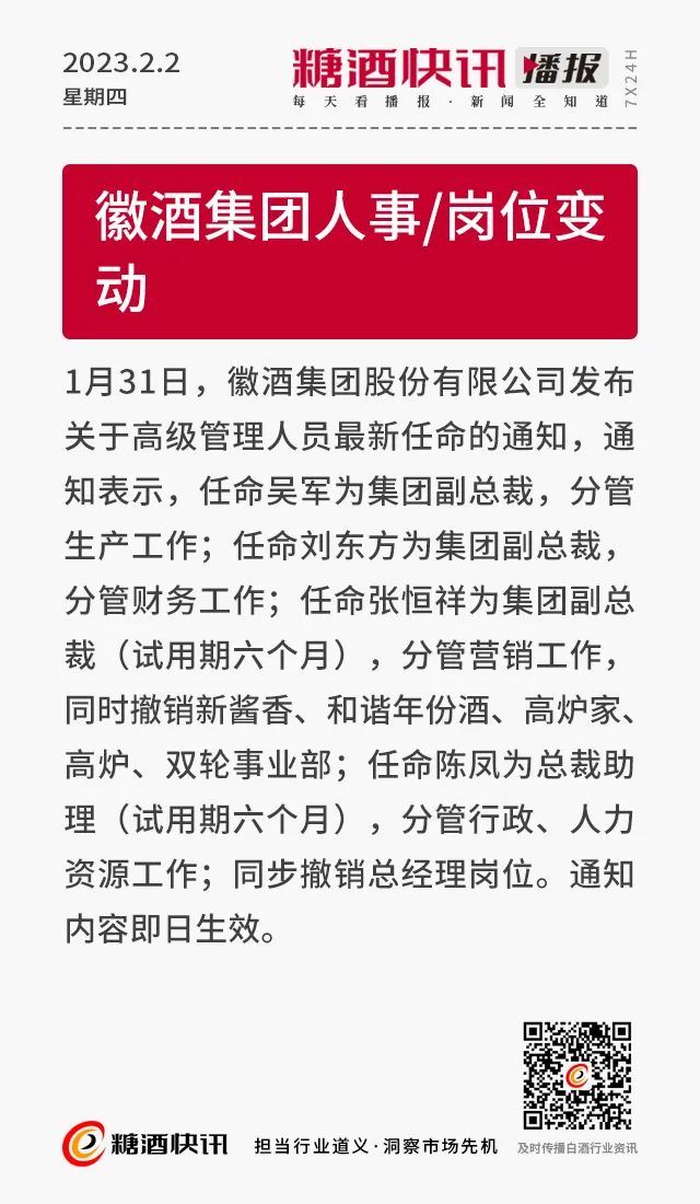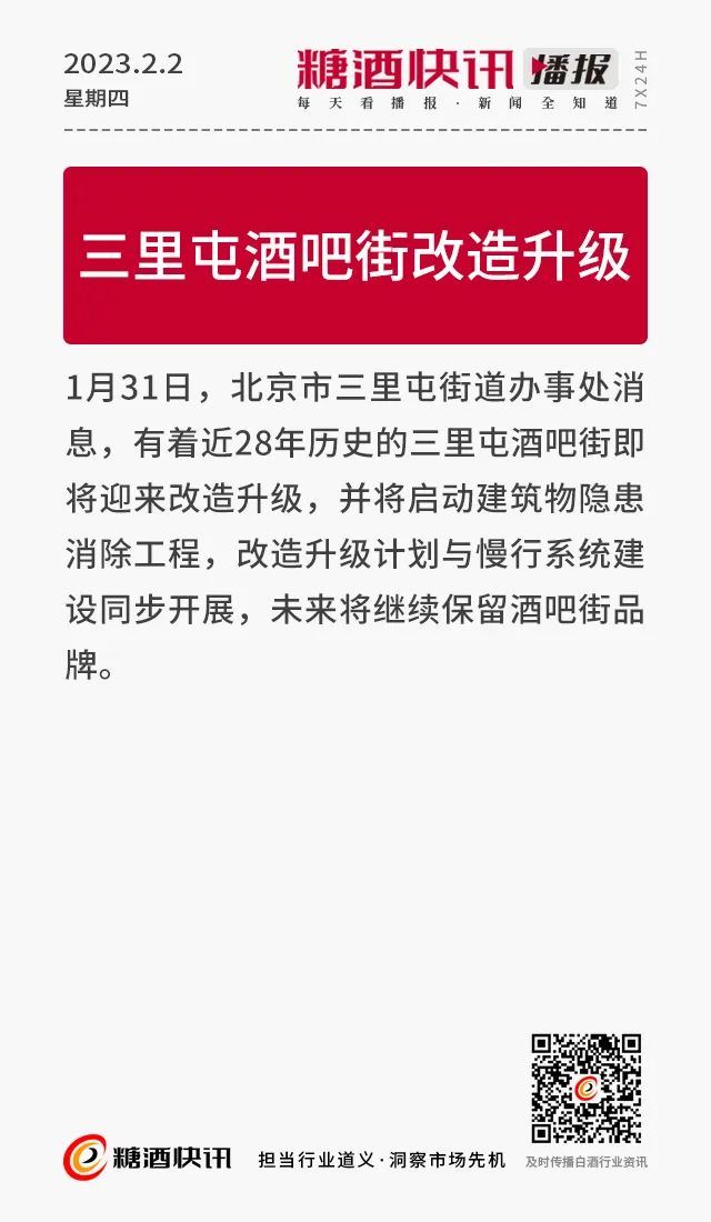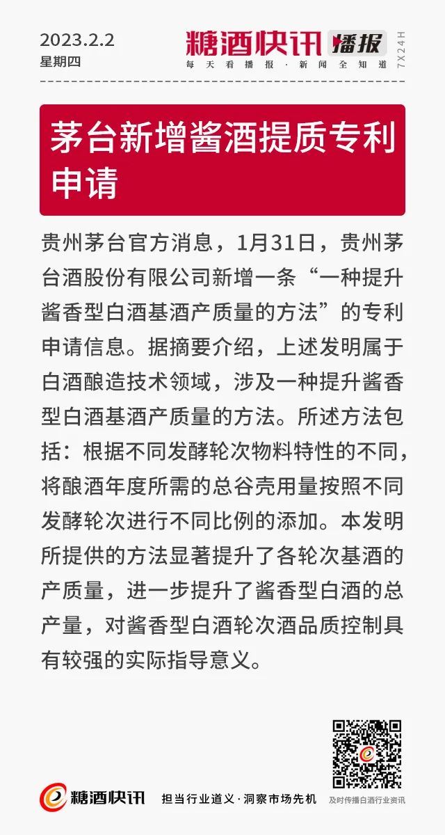 02.02 | 茅台新增酱酒提质专利申请;徽酒集团人事/岗位变动;三里屯酒吧街改造升级……