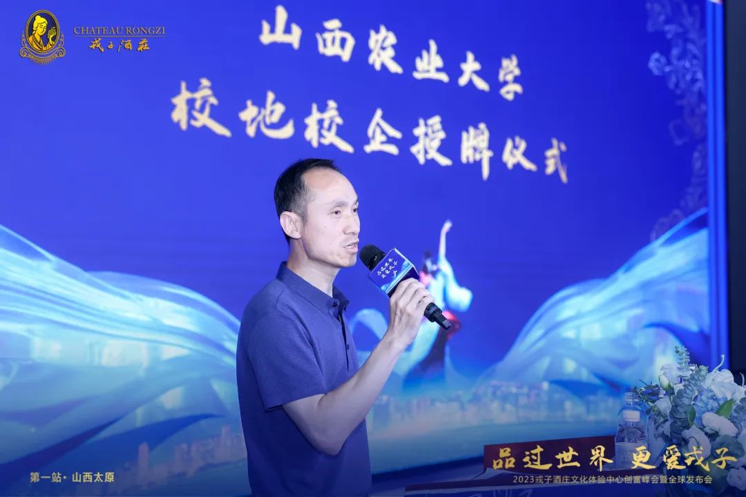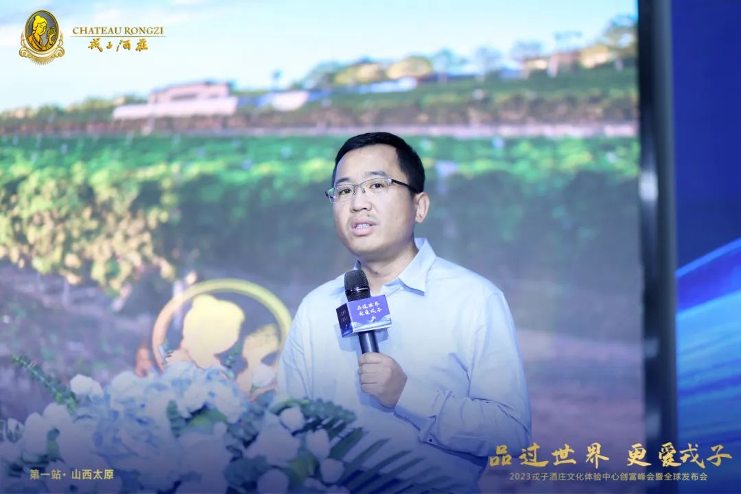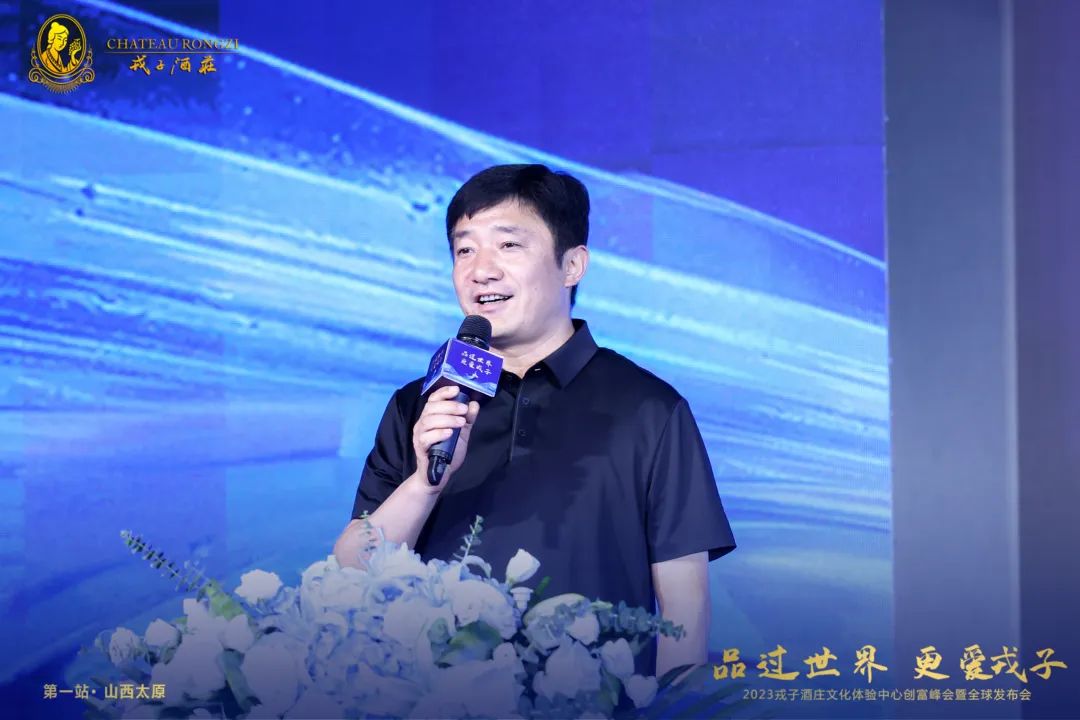 山西戎子实业集团有限公司董事局主席、戎子酒庄庄主 张文泉先生首先致欢迎辞:戎子酒庄是以企业名称命名的国家地理标志保护区,中国第一批被认证的“中国酒庄酒”企业之一,山西省首批特色小镇,山西省2021“高新技术企业”,山西省农业产业化省级重点龙头企业。我们以戎子为平台,以葡萄酒为载体,共创多赢,实现大家的财富梦想。真诚欢迎社会各界有识之士与我们共同打造戎子酒庄文化体验中心!