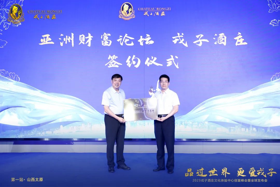 亚洲财富论坛执行主席、秘书长韩剑锋和戎子实业集团董事局主席张文泉先生共同签署合作书并授牌