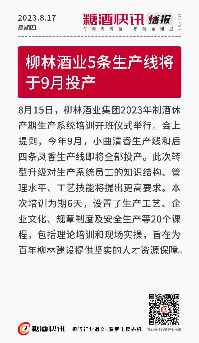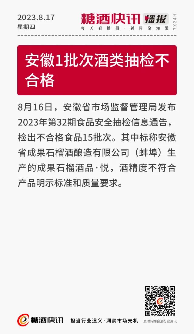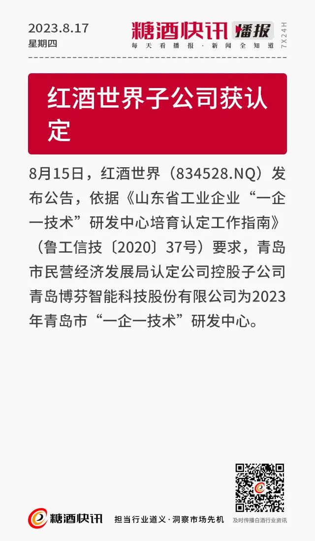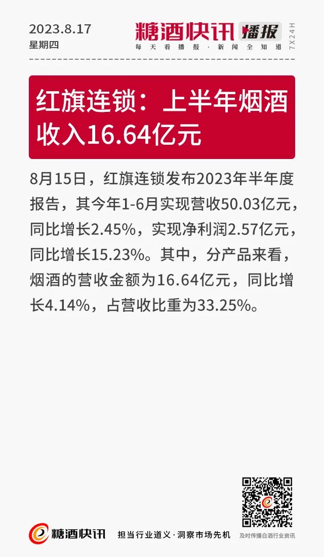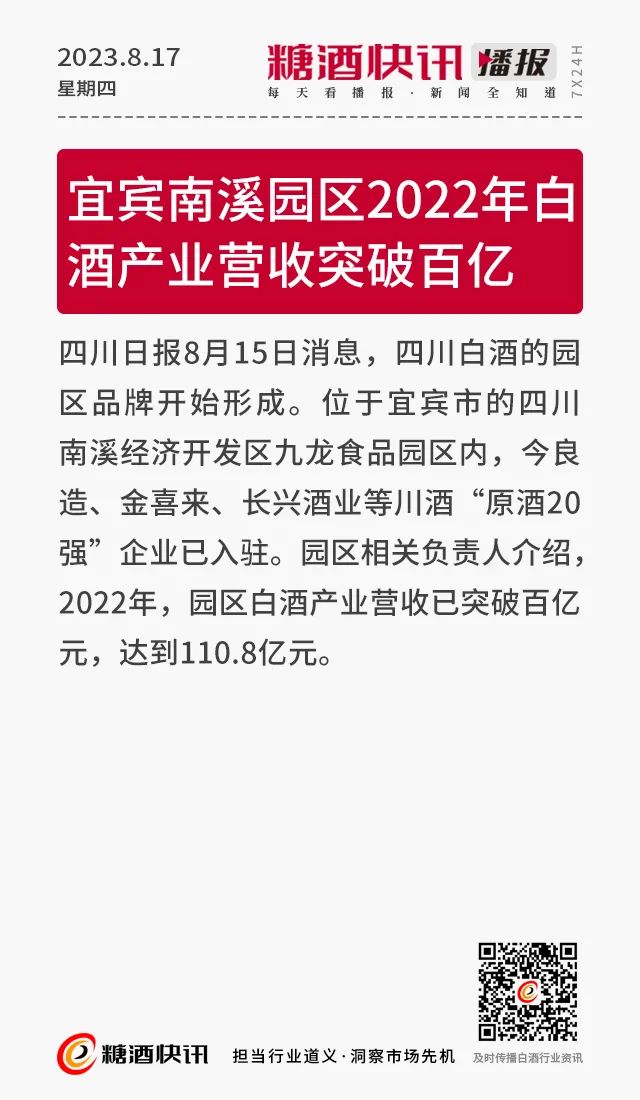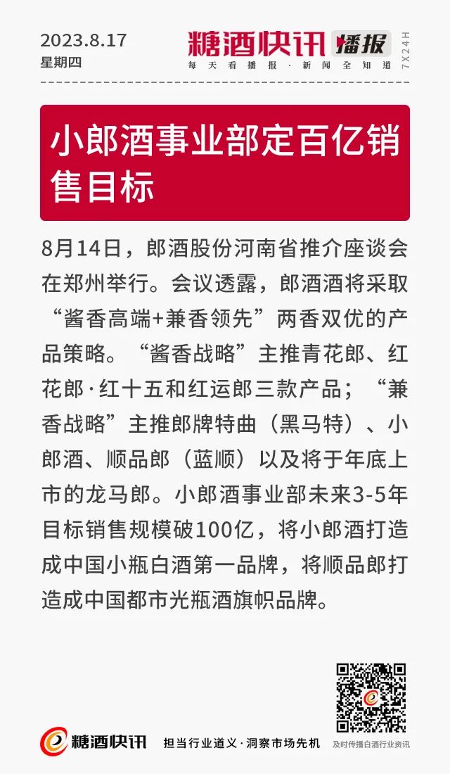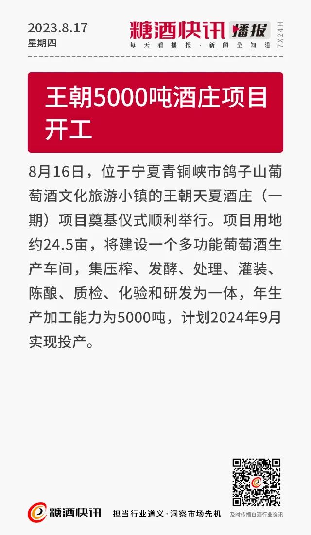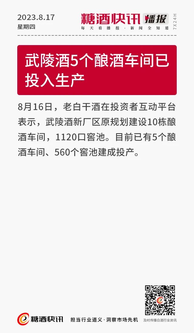 08.17 | 上半年酒类产量数据发布;仁怀36.5万亩酒用高粱采收;富邑集团发布2023财年业绩报告……