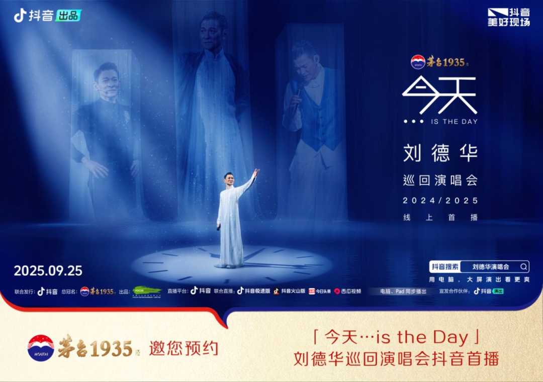 9月25日19:30,茅台1935总冠名的《今天...is the Day》刘德华巡回演唱会在抖音独家首播。尽管这场演唱会是刘德华演唱会的重映,但依然吸引了巨大关注:开场仅十分钟观看人次便突破300万,最终累计观看人数超8200万次。