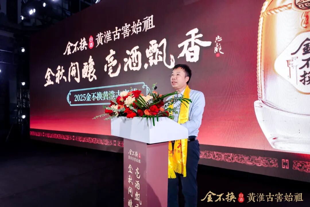 “安徽,作为中国白酒的重要产区之一,承载着悠久的酿酒历史和深厚的文化底蕴。而金不换酒业,正是徽酒文化中一颗璀璨的明珠。”安徽食品行业协会常务副会长兼秘书长邵栋梁在致辞中表示,并围绕“黄淮古窖,六百年的文化传承;质量为本,从原料到美酒的坚守;科技赋能,传统产业的现代化转型;展望未来,徽酒振兴的机遇与挑战”四个维度给予金不换酒业高度赞许。