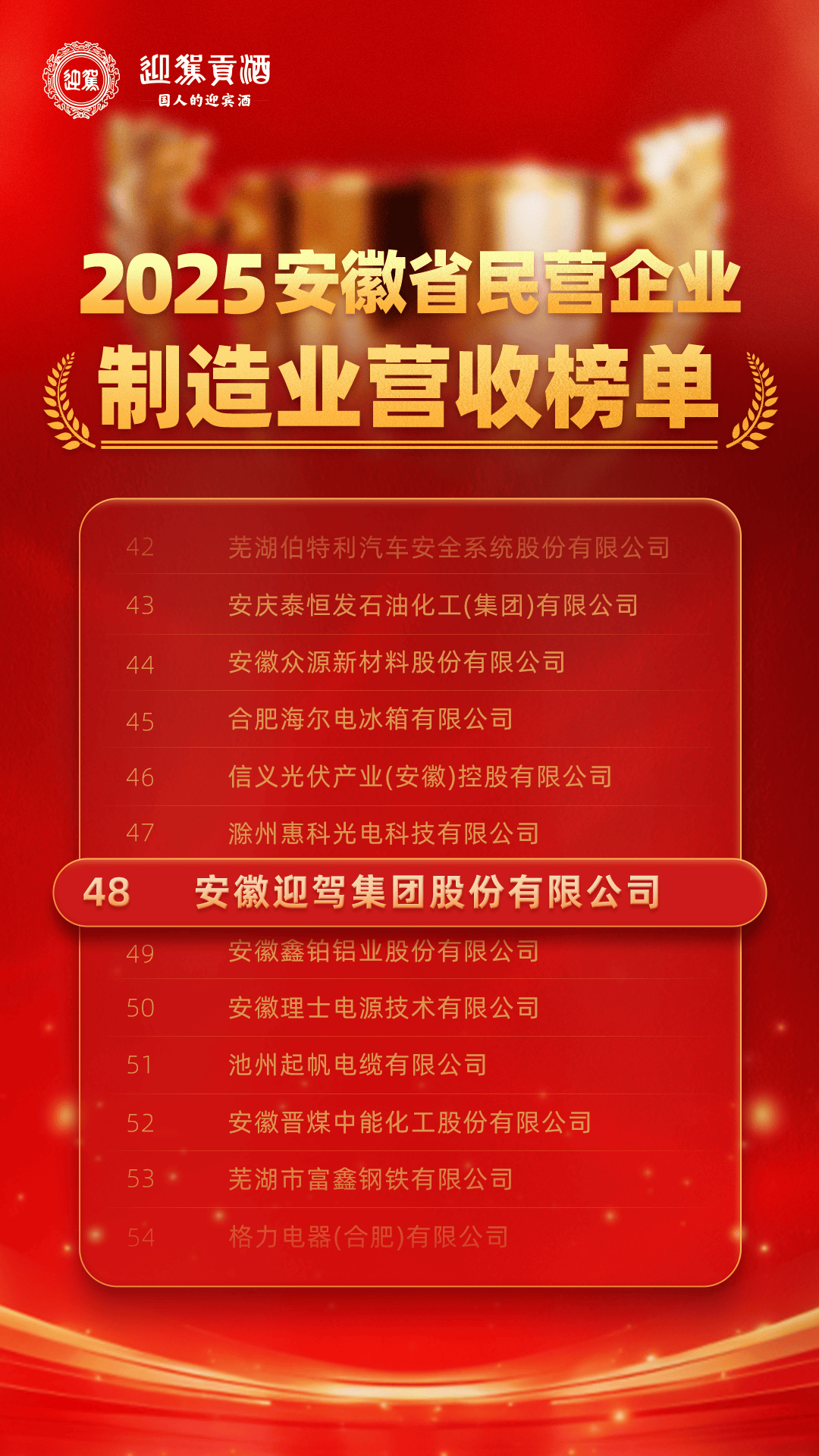 实力蝉联!安徽迎驾集团荣登2025安徽省民营企业双百强榜单