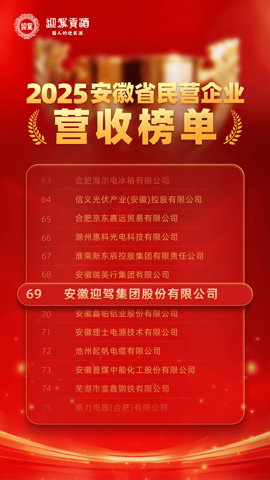 10月16日上午,2025安徽省民营企业百强发布会在合肥举行。安徽迎驾集团榜上有名,荣获2025安徽省民营企业营收百强榜单第69名、安徽省民营企业制造业百强榜单第48名。这是迎驾连续多年蝉联该权威榜单,再次彰显了企业在区域经济高质量发展中的骨干力量与品牌韧性!