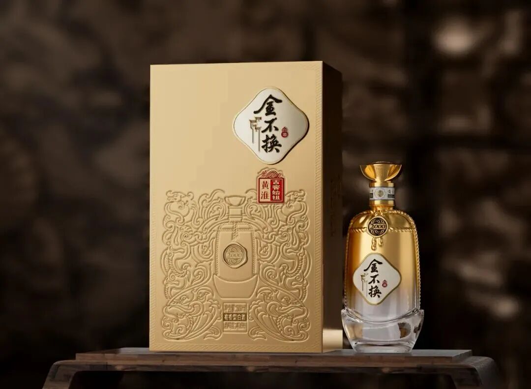 “金不换2000”不但拥有超高性价比的酒质,还拥有完美的容颜。打开产品包装,是一抹沉敛的「古窖金」,瓶身烫金勾勒的纹理如年轮般层层叠放——那是宣德元年曹操后人开窖的印记,也是光绪年间天吉长酒坊扩建的窖群轮廓。瓶颈与瓶身交界处三道线暗合「三窖合一」的工艺哲学,在方寸之间凝成「黄淮古窖始祖」的立体图腾。正上方印章如同火漆加热融化后滴在封口处,然后趁热盖上金不换「2000」印鉴,以示郑重。