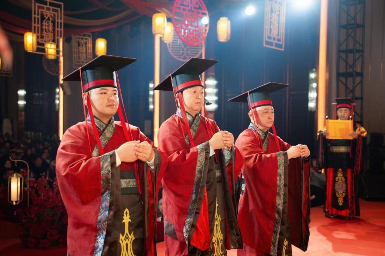 主礼人身着汉服肃穆开礼,执事手擎四方图腾旗、恭奉五谷庄严入场,主祭、亚祭、终祭官依次行沃盥之礼,通过 “初献焚香、亚献供五谷、终献奉清水” 的三献大礼,焚香祷告、恭诵祝文,以传统礼仪致敬神农炎帝,缅怀农耕文明开创者,彰显了农耕赋品牌对中华优秀传统文化的尊崇与传承。