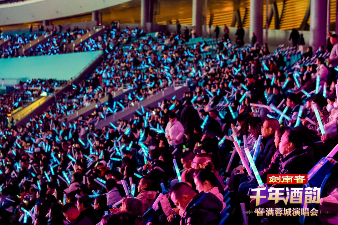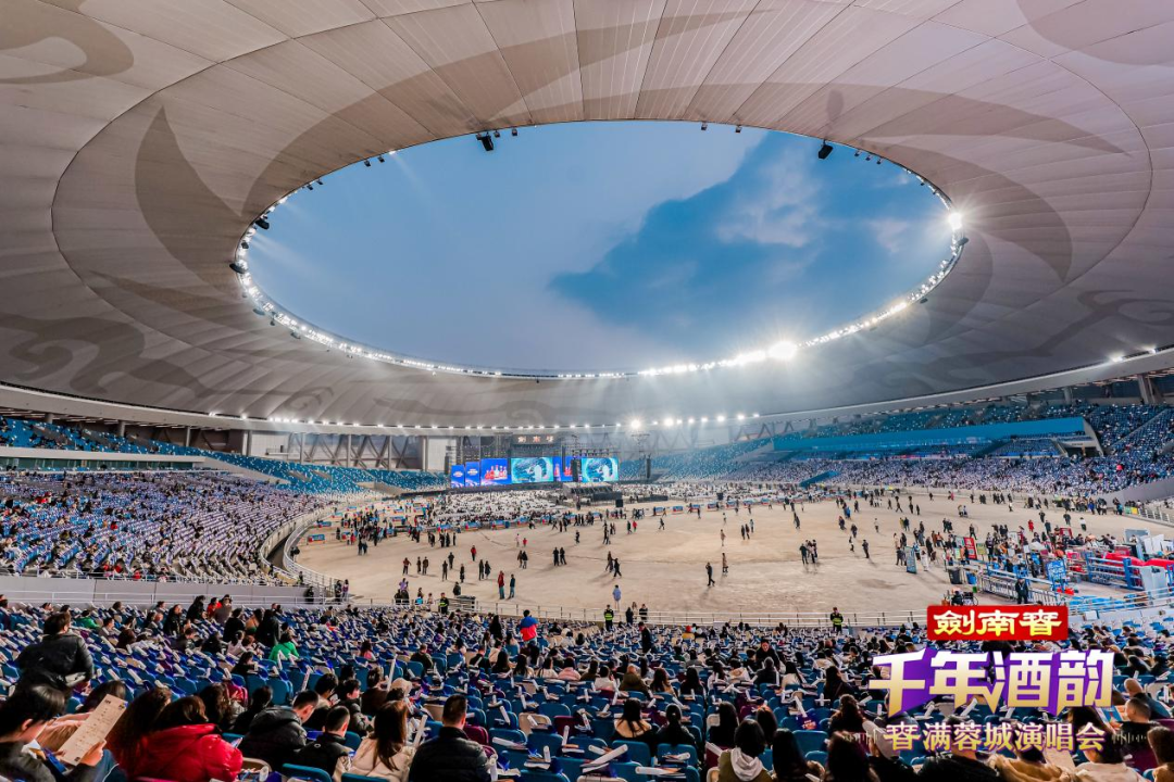 11月28日晚,成都东安湖体育公园主体育场灯火璀璨、人声鼎沸。一场不对外售票的剑南春「千年酒韵“春”满蓉城」演唱会在这里举行。