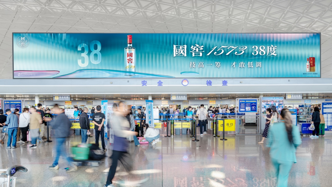 近日,38度国窖1573携焕新广告形象,以“技高一筹,才敢低调”的广告语正式登陆机场航站楼、高铁站等交通枢纽。