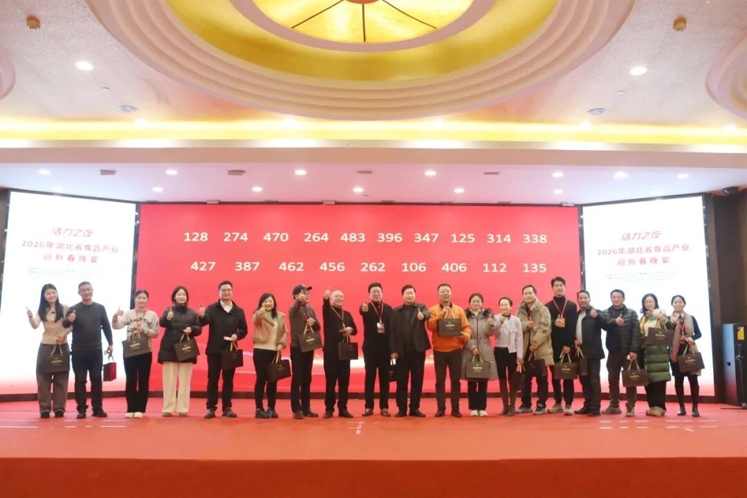 在随后举行的“活力之夜”2026年湖北省食品产业迎新春晚宴上,行业同仁们欢聚一堂,在温馨喜庆的氛围中共话友谊、畅享未来。湖北大鼓以其浓郁的地方风情拉开文艺演出的序幕,《龙船调》《暗里着迷》《月半小夜曲》《我爱你中国》《祝福你中国》等歌曲或深情款款,或大气磅礴,将现场气氛推向了高潮。晚宴还穿插了激动人心的抽奖环节,稻花香现场送出40份馫香型白酒礼盒,满载着湖北特色食品的醇厚情谊,为本次大会画上圆满句号。