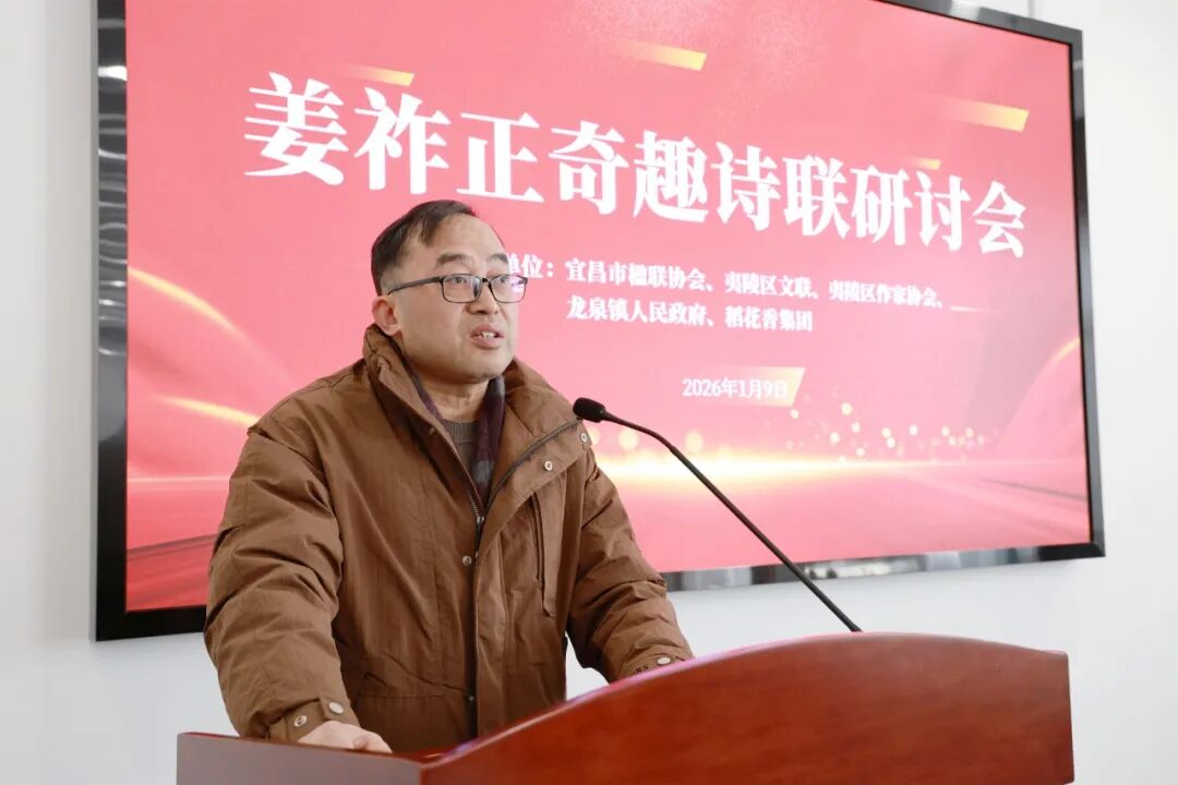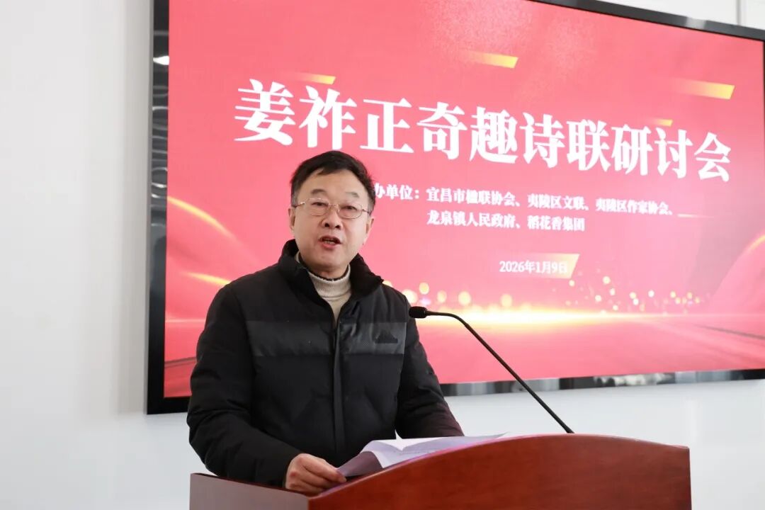 据了解,今年92岁高龄的姜祚正先生是从夷陵区龙泉镇走出的文化名家,有着“诗书两绝技,华夏一奇人”的美誉,已推出七本奇趣诗联专著,并创立五十多种诗体。2025年,经宜昌、深圳两地作家和学者联手,编纂《姜祚正的奇趣人生》新著并公开出版,此次研讨会即以此为契机举行。