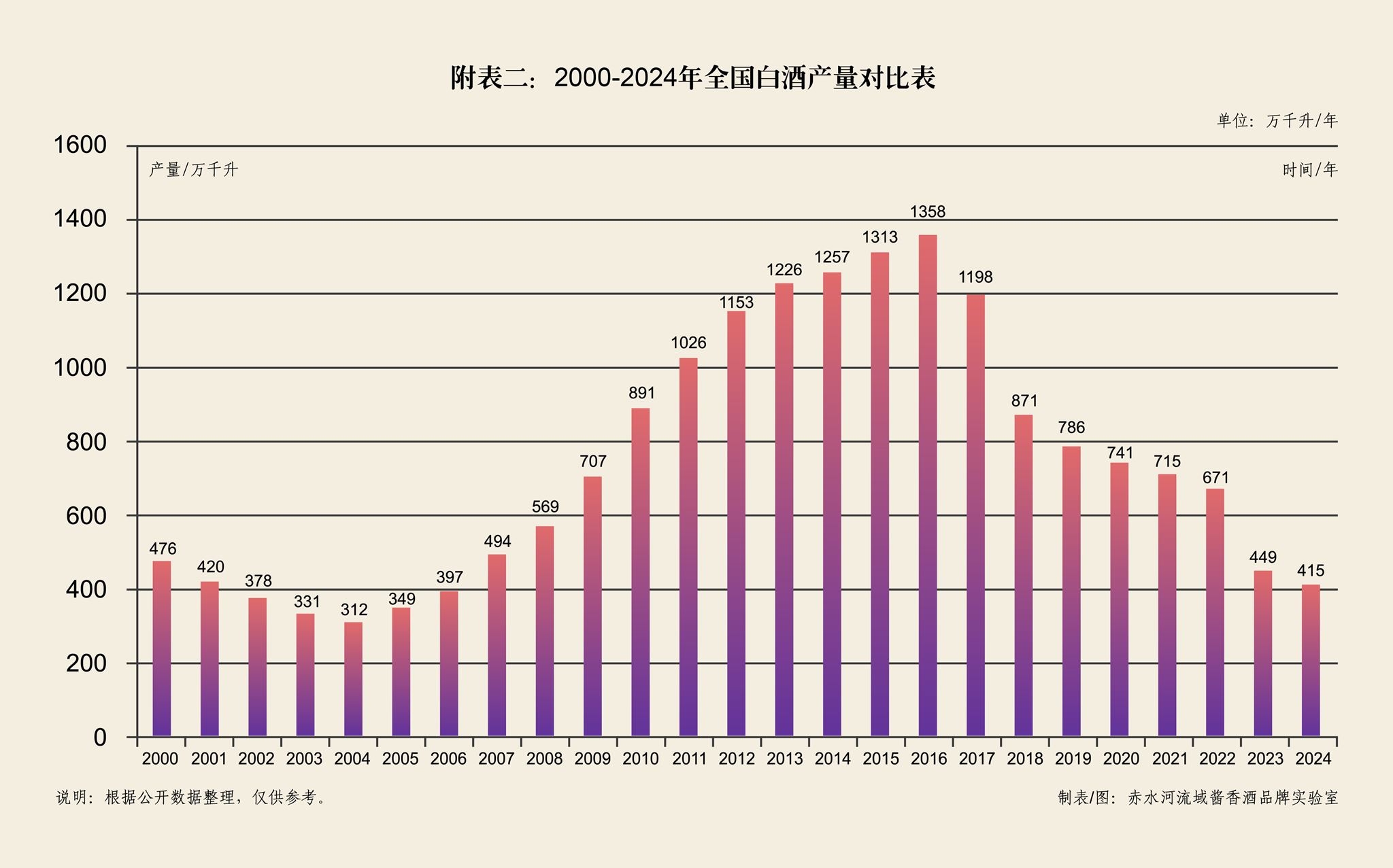 自2022年以来,白酒业受宏观经济提质换挡、消费迭代换向和消费转型升级等因素影响,一方面加速了白酒业结构性和系统性转型升级的速度,旧体系和新逻辑之间的矛盾日益突出,旧世界和新消费的距离愈加拉大;另一面凸显了白酒业盲目扩产增能的隐藏风险和追求短期利益的泡沫现象。