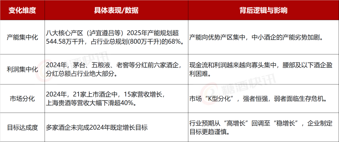 这一系列变化最终体现为行业集中度的空前提升。数据显示,规模以上白酒企业数量已从高峰时的近1600家减少至2024年的不足700家。同时,产能进一步向核心产区聚集,泸州、宜宾、遵义等八大核心产区2025年规划产能已超544万千升,占行业总规划目标的近七成。