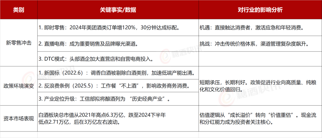 这一转变背后,是多重力量交织作用的结果。一方面,人口结构变化、健康意识提升及消费选择多元化,导致白酒消费总量自然回落。另一方面,持续的消费升级使得具备品牌、品质优势的头部产品获得溢价,推升了行业整体吨价。更为关键的是,产业政策与市场规律共同驱动的供给侧改革,如2022年实施的白酒新国标(明确将调香白酒剔除出白酒序列),以及2025年《反食品浪费条例》中对工作餐“不上酒”的规定,在加速低端、不规范产能出清的同时,也深刻影响了传统政务商务消费场景。
