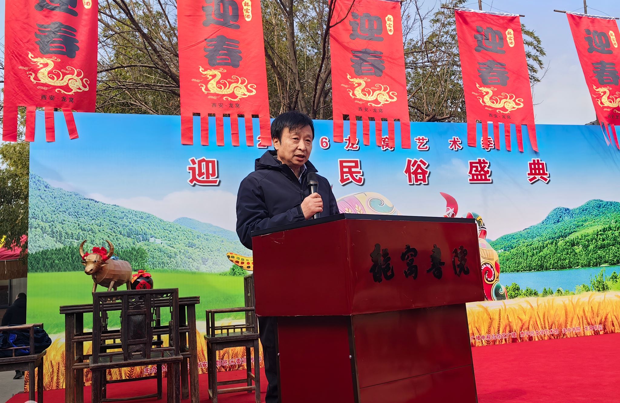 活动在终南鼓乐声中拉开帷幕。鄠邑区副区长吴宁超在致辞中强调:“‘鞭春牛’不仅是农耕文明的活化石,更是非遗赋能乡村振兴的生动实践。我们通过整合12项省市级非遗项目,将其升级为‘春启、春诵、春鞭、春巡’的完整节事链,让老民俗焕发新流量。”西安广播电视台副台长席震宙则点赞龙窝书院“以文化为媒,架起传统与现代的桥梁”。