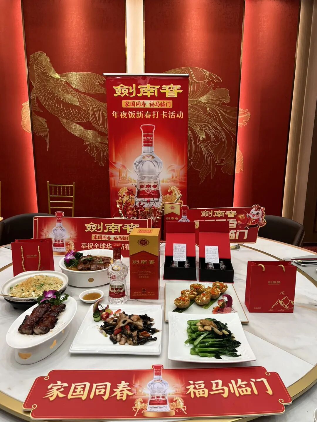 匹配以KOL/KOC的探店引流、终端物料陈列,形成了“品牌统一输出+渠道精准落地+达人内容引流”的三位一体渠道打法。在四川区域,剑南春利用主场优势,深度参与“新春购物节”“年货大集”“德阳灯会”等活动,设立品牌展位强化地域渗透;在酒店场景,则与美团/点评合作,在广州、上海精选酒店推出主题年夜饭套餐,引导顾客打卡分享。