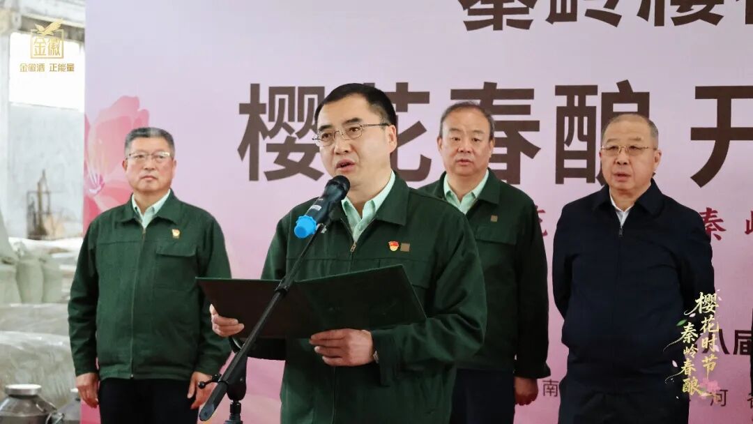 上午9点,开酿仪式在酿酒一车间举行。金徽酒副总裁唐云在致辞中强调:“每年樱花盛放、春和景明之时,金徽人都会如期举办‘樱花时节·秦岭春酿’系列活动,恭祭酒神、启封春酿、典藏美好。这既是对千年酿酒技艺的坚守与传承,也是对传统酒礼文化的弘扬与创新,更是持续擦亮‘绽放秦岭深处的文化IP盛宴’、深化消费者体验的重要载体。我们始终以敬畏之心对待每一粒粮食、以严谨之心恪守每一道工序,以匠心酿造‘绵甜润雅、饮后轻松’的生态美酒,让品质成为金徽酒最坚实的底气。”