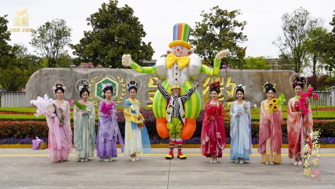 连日来,金徽生态酿酒园内花香与酒香交织,游客们徜徉于樱花树下,参与丰富多彩的互动活动。在文化体验板块,霓裳樱影汉服秀成为流动风景线,花神巡游穿梭于樱花丛中,衣袂与花瓣齐飞。DIY调酒区人气高涨,游客可亲手调制樱花主题金徽特调。非遗工艺展示台前,传承者现场演示传统工序,让观众零距离感受“指尖上的匠心”。金徽文创现场售卖区人头攒动,各类特色衍生品深受喜爱。