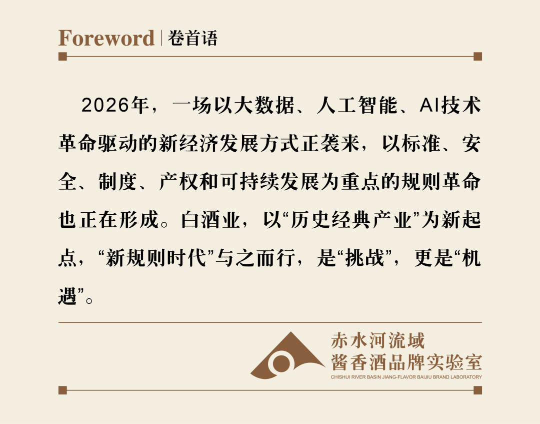 2026年,?场以大数据、人工智能、AI技术革命驱动的新经济发展方式正袭来,?场以标准、安全、制度、产权和可持续发展为重点的规则革命也正在形成。白酒业,以“历史经典产业”为新起点,与“新规则时代”同行,是“挑战”,更是“机遇”。