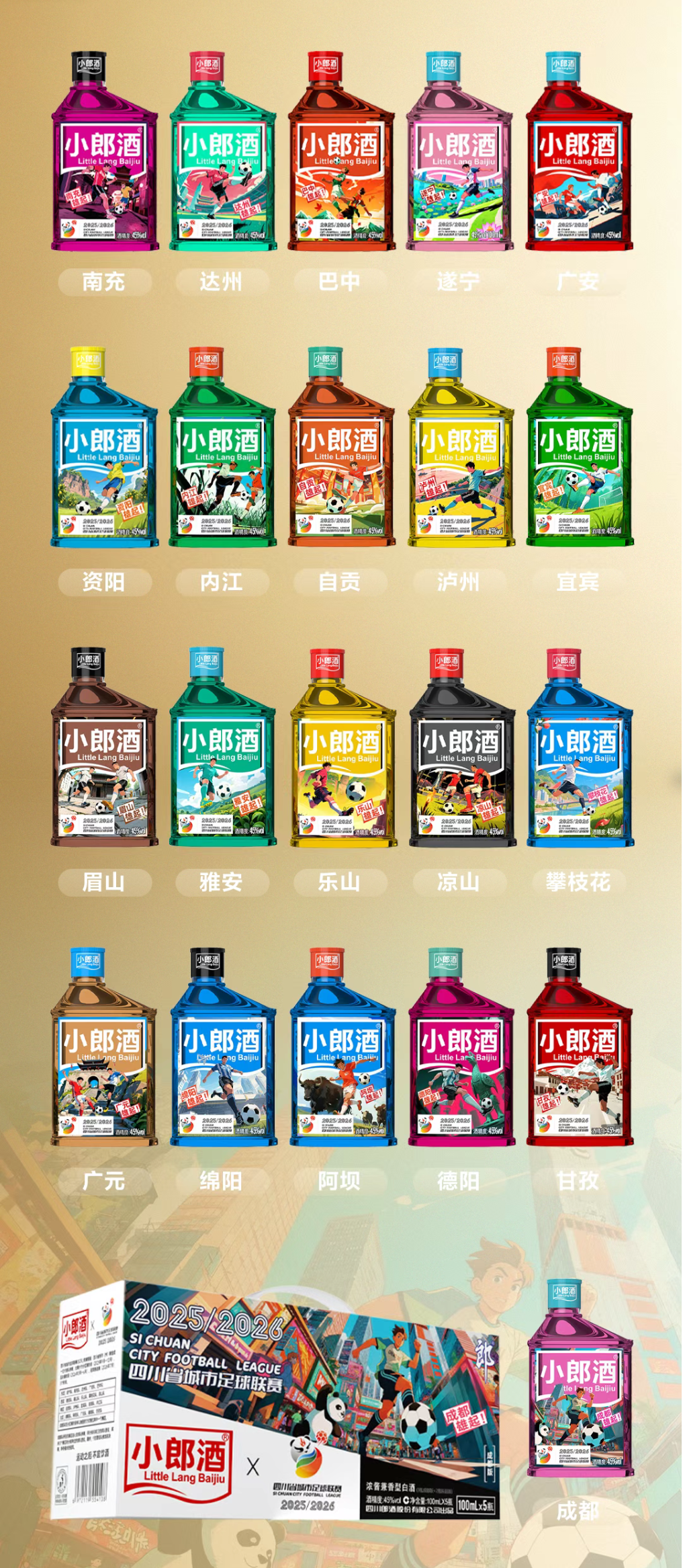 4月14日,郎酒股份发布消息,在2026年川超决赛阶段开踢之际,“小郎酒x川超联名版”二十一城全集合臻藏版焕新上线。“小郎酒x川超联名版”礼盒内含21款城市版各一瓶,每瓶对应一支川超球队,每瓶镌刻专属城市地标,一盒藏尽全川足球版图。(郎酒股份)
