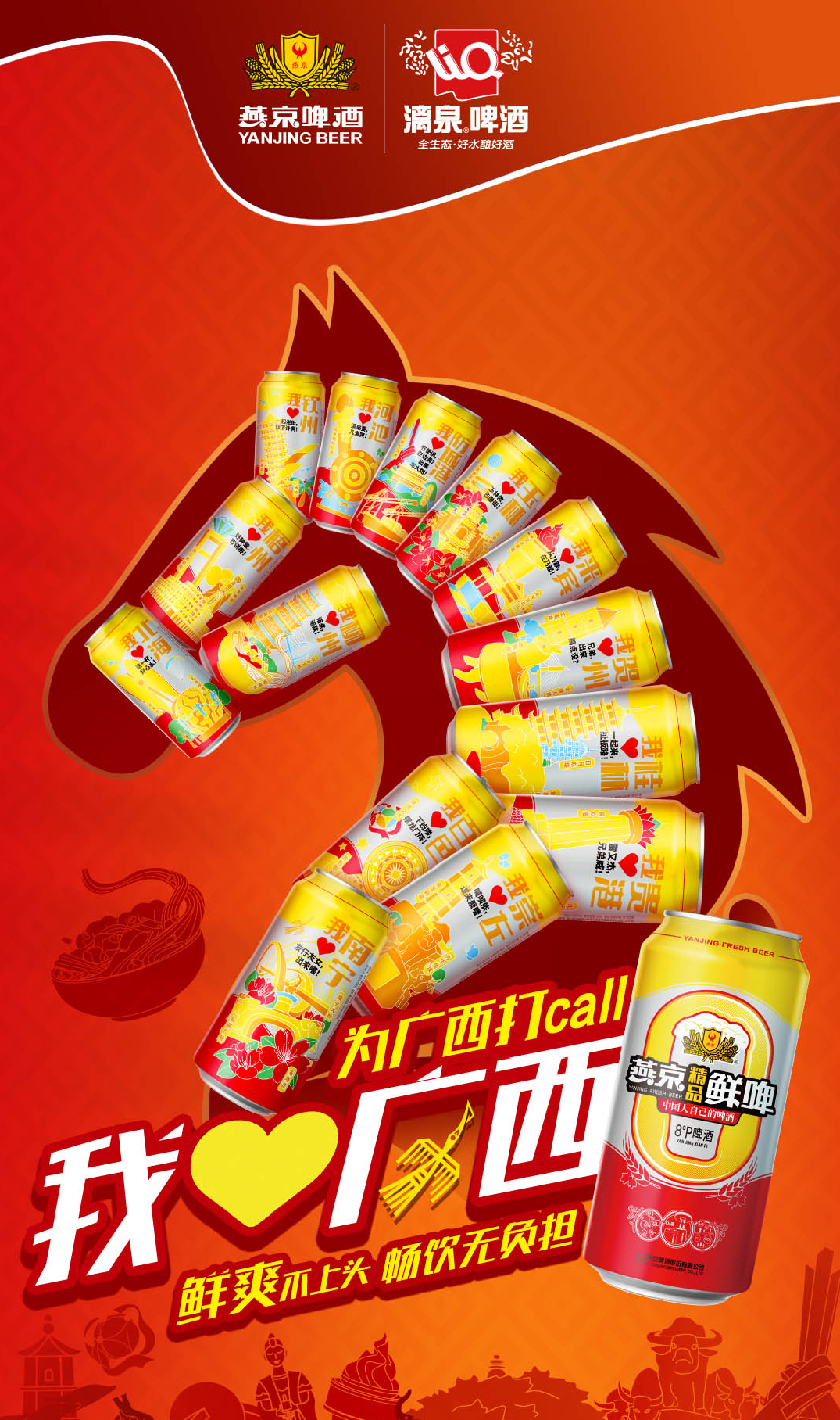 4月15日,燕京鲜啤新一代广西城市罐焕新上市,14座城市、14罐设计。该产品采用新一代锁鲜技术,麦香与酒花香平衡,尾调干净回甘,鲜爽体验升级。(漓泉啤酒)