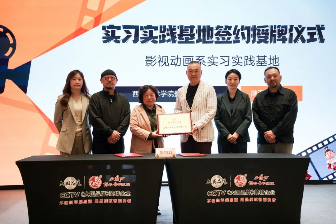 正式签约后,西美影视动画系正式向凤美术馆授予“西安美术学院影视动画系实习实践基地”牌匾。自此,双方正式达成校企合作关系。