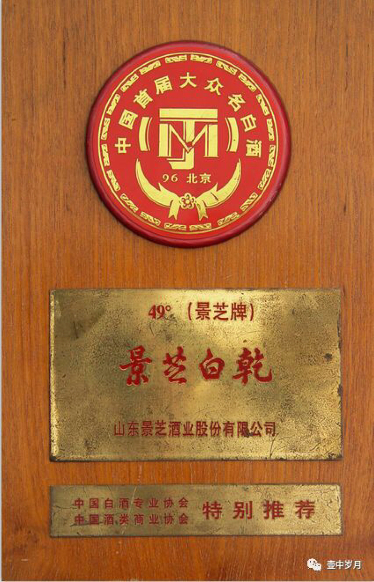 1996年景芝白乾被评为中国首届八大大众名白酒
