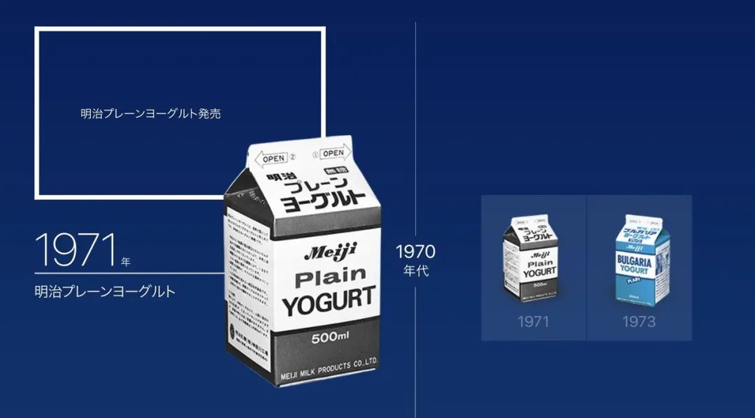 2018年全球主要国家酸奶市场对比。图片来源:Mintel其次,酸奶在整个液态乳制品市场中的占比,反映出产业发展的倾向性与居民消费偏好。日本与英国、美国和中国大陆相比,酸奶的占比明显高出一截。最后,日本酸奶伴随着形态丰富、延伸力极强的零售终端,遍布城市乡村、大街小巷。特别是三大连锁零售巨头罗森、全家和7-11的快速扩张,酸奶成为日本人随手可得的常规食品。除了这三点外,产品品类繁多也是日本酸奶的亮眼之处。在原料、风味、功能诉求上都表现出超强的推新能力。接下来,我们就逆时光而行,看看日本酸奶在过去的100年里,究竟发生了什么?奈良时代(大致平行于中国的唐代),日本就已经出现了酸奶的雏形。当时的乳制品被视为珍品,只有皇室与贵族才有资格享用。日本酸奶的商业化始于1894年(明治27年),当时有人将一种名为凝乳的乳制品进行贩卖,以整肠剂为卖点宣传。到二战结束之前,酸奶在日本更多被作为医药品使用,并没有出现在一般家庭的日常饮食中。1910-1920年代,明治、森永和雪印纷纷创立。创立之初,三巨头以纯牛奶、奶粉等产品为主营,酸奶尚未能进入他们的视野中。图片来源:topics.foodpeptide.com契机来自Calpis。Calpis创始人三岛海云去蒙古访问,长途旅行让身体疲劳不堪。在饮用当地游牧民珍藏的一种白色液体后,身体得到快速恢复。受此启发,三岛海云在1919年推出日本第一款乳酸菌饮料。自此,发酵乳饮料进入日本。Calpis于1919年推出的第一款乳酸菌饮料,右边是其创始人三岛海云。图片来源:www.huffingtonpost.jp历史飞奔,接下来的数十年,日本陷入战争泥淖,乳品工业仅仅作为民生保障,创新发展无从谈起。日本国民的生活西化始于明治维新,二战后掀起高潮。首先是黄油、奶酪、面包等欧美食品开始在日本流行。学校推行学生餐,也带动起液态乳制品的消费。相比于牛奶、黄油这些民生食品,大众对酸奶的消费意识还远没有达到推动产业发展的地步。但是,随着西方饮食的逐年渗透,日本民众对于各类乳制品展现出开放心态,酸奶的独特口感和健康形象逐渐吸引了人们关注。1950年,明治乳业在自社工厂首先开启了酸奶工业化生产。所推出的蜂蜜酸奶「明治ハネーヨーグルト」成为日本酸奶向家庭普及过程中的先驱产品。这个时期,其它乳业公司也逐渐开始生产酸奶。当时的酸奶中除了甜味剂和香料之外,多加入琼脂等胶凝剂,具有类似果冻的口感。产品在发酵后经过热处理,可以常温保存,采用小玻璃罐包装,更像是零食或餐后甜点。到1953年,东京都内每天酸奶的消费量达到了5万瓶,酸奶在乳制品中崭露头角。明治于1950年推出的日本第一款工业化酸奶——蜂蜜酸奶「明治ハネーヨーグルト」。图片来源:topics.foodpeptide.com03、1956-1976:经济腾飞时代,保加利亚酸奶一鸣惊人1956年,日本政府发布《经济白皮书》,宣称:“今后的增长将由现代化来支撑。”为此,日本大量引进欧美先进生产技术与设备,扩大投资,兴建新企,迅速形成电机、电子、汽车、石油化工等六大新兴工业部门,日本国民经济踏上腾飞之路。得益于制造业的发展,日本酸奶制造技术也在进步。明治公司在1964年开发出酸奶连续发酵装置,1969年开发出能够输送颗粒食品的灌装设备,果肉酸奶得以登台亮相。在此期间,保加利亚酸奶被明治引入日本,成为推动酸奶在民间消费爆发的一个重要因素。1960年代后期,明治开始筹备保加利亚式酸奶的开发。东欧高加索山区的长寿现象,以及特征饮食,早已经成为世界各国的研究焦点。以保加利亚为代表的的东欧国家成为酸奶的神圣发源地。通过多次实地走访与考察,明治将他们的见闻告诉消费者:在保加利亚,乳制品生产是一个古老的传统,“风不同,水不同,光不同”,才造就出独特的长寿食品。1970 年的大阪世博会上,备受争议的标志性建筑物——太阳塔“站”在主场馆中心,注视着络绎不绝的游客。图片来源:第一财经1970年大阪世博会,给了日本国民了解海外世界的一个机会。在保加利亚馆,明治公司的员工第一次品尝到真正的保加利亚酸奶,酸酸的口感,与日本的“甜果冻”式酸奶截然不同,令人触动,印象深刻。到了1971年,明治在日本正式推出 “普通酸奶”「明治プレーンヨーグルト」。尽管日本人对它的怪异味道深感厌恶,担心已经变质。但明治仍然坚持不懈。1973年,在与保加利亚国有乳品公司达成进口酸奶发酵剂的协议之后,明治获得了使用“保加利亚酸奶”冠名的许可,旗下酸奶正式更名为明治保加利亚酸奶。明治在1971年推出的首款具有保加利亚风格的普通酸奶。1973年,在获得保加利亚授权后,将“保加利亚”印在了酸奶包装的正面,并成为明治酸奶的一个特征标志沿袭至今。图片来源:note.com
