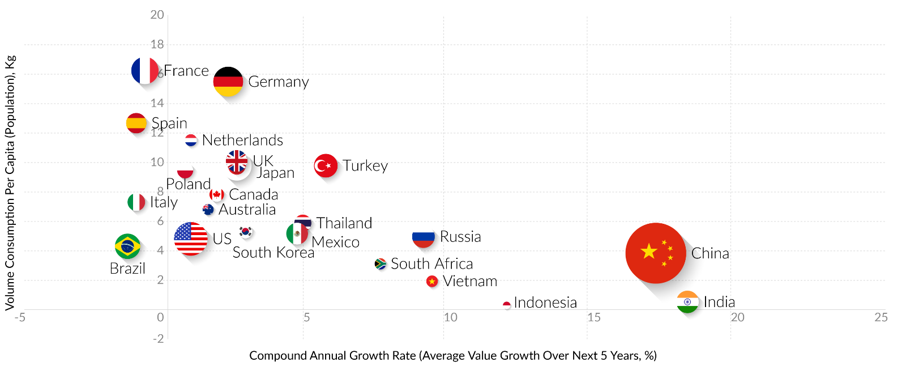 首先看人均量。2018年,日本的人均酸奶消费量雄踞亚洲之首,达到9.8公斤/人?年。即便放在全球范围,也属于中上水平。从年均增速看,日本高于主要的发达市场,但低于新兴市场,处于两类市场的结合地带。