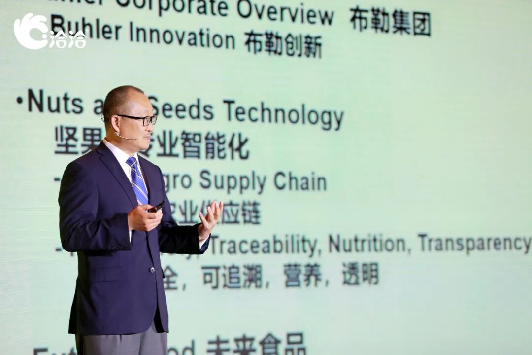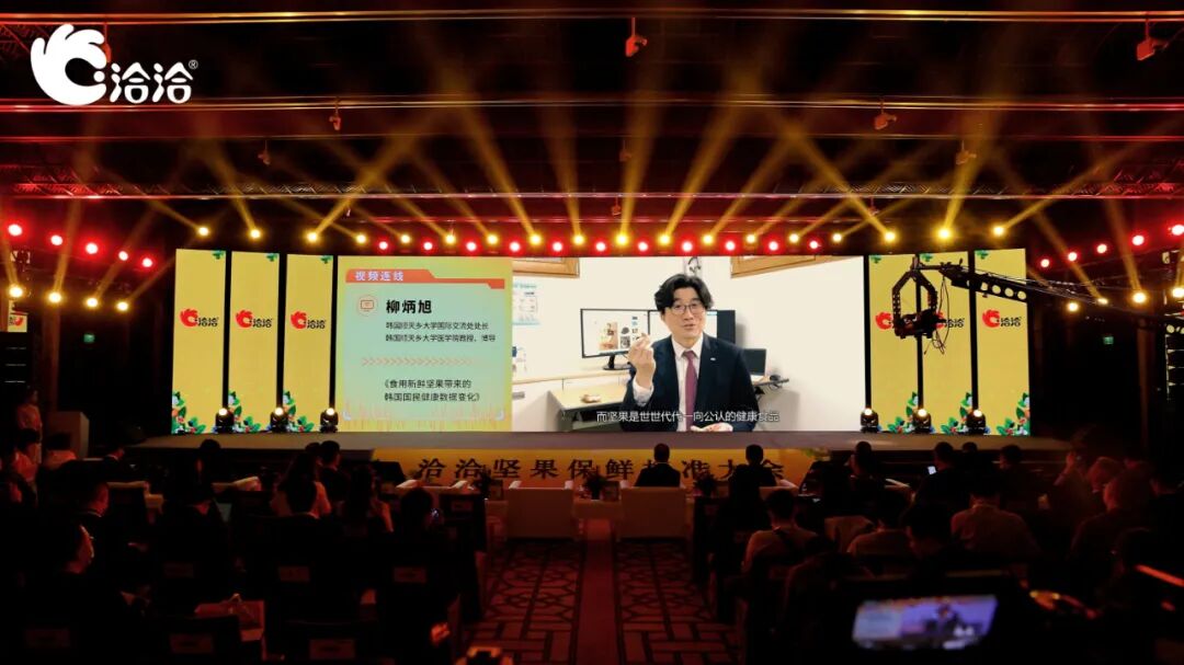发布会上,中国林业科学研究院首席核桃专家,以及洽洽食品、上海浩爽实业、布勒(中国)、黄山永新、上海大和衡器的相关负责人等产业链代表,以及优质核桃产区新疆阿克苏地区代表,共同发起《洽洽全球坚果保鲜产业链联盟》倡议,对于促进全行业提升品质起到巨大的示范与推动作用。消费升级大潮下,健康养生理念逐渐深入人心。特别是今年这场疫情,让中国人格外看重免疫力和均衡的营养摄入。具有悠久食用历史的坚果自然成为健康饮食的首选。早在2007年,美国FDA就向全球公布:坚果与籽类食品为B级健康食品,对人体具有五大健康功能。其中特别指出有益心脏健康。国际坚果及干果协会主席迈克·沃宁表示:坚果拥有天然的健康属性以及丰富的营养含量(蛋白质、多种维生素及矿物质),是全球公认的健康食物。中国高速增长的坚果市场对全球坚果产业发展做出了重要贡献。在今年疫情期间,坚果还成为了“态度免疫”的关键食物,有助于提升身体和心理双重免疫力。国际坚果与干果协会(INC)主席 迈克·沃宁图片分享你所不知道的坚果力量。来源:洽洽在同样属于东方饮食圈的韩国,坚果是世世代代公认的健康食物,是国民饮食中不可缺少的一部分。韩国顺天乡大学国际交流处处长柳炳旭教授介绍说,韩国人流行在早上吃坚果,韩国政府就曾建议国民坚持每天吃15-25克混合坚果。上海交通大学营养与功能食品创新中心主任蔡美琴教授也认为:坚果不止是休闲零食,而是膳食营养的重要组成部分,是融营养和保健于一体的功能性食源。韩国顺天乡大学国际交流处处长柳炳旭教授分享食用坚果给韩国国民健康带来的变化。图片来源:洽洽基于全球社会对于坚果的高度认可,国内坚果食品企业积极开展各种形式的消费者教育,让坚果高营养密度、天然美味的良好形象扎根国人心中。2019年底,洽洽联合生命时报发布《坚果营养白皮书》,用浅显易懂的图形文字向消费者传递坚果营养价值。